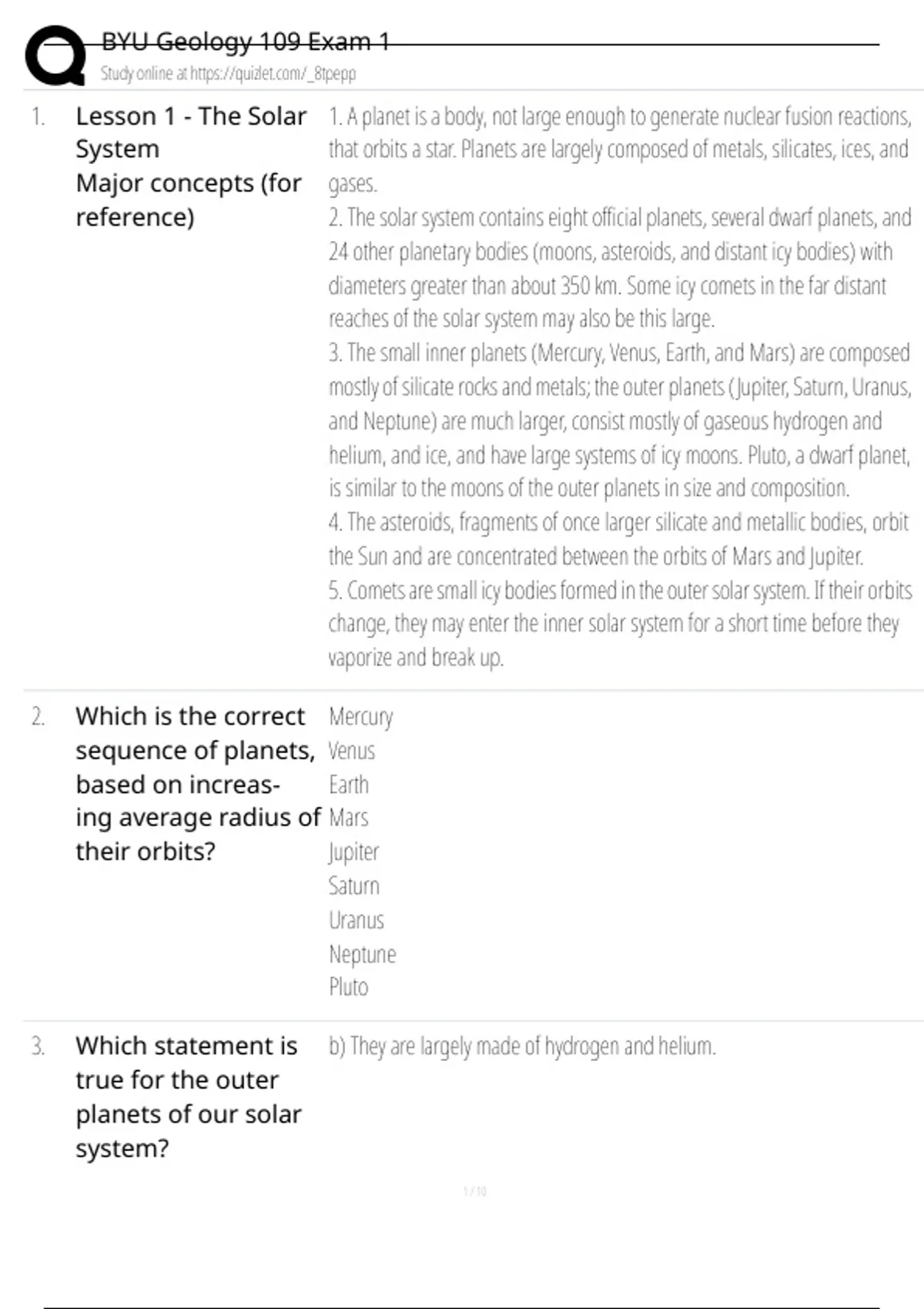 BYU Geology 109 Exam 1