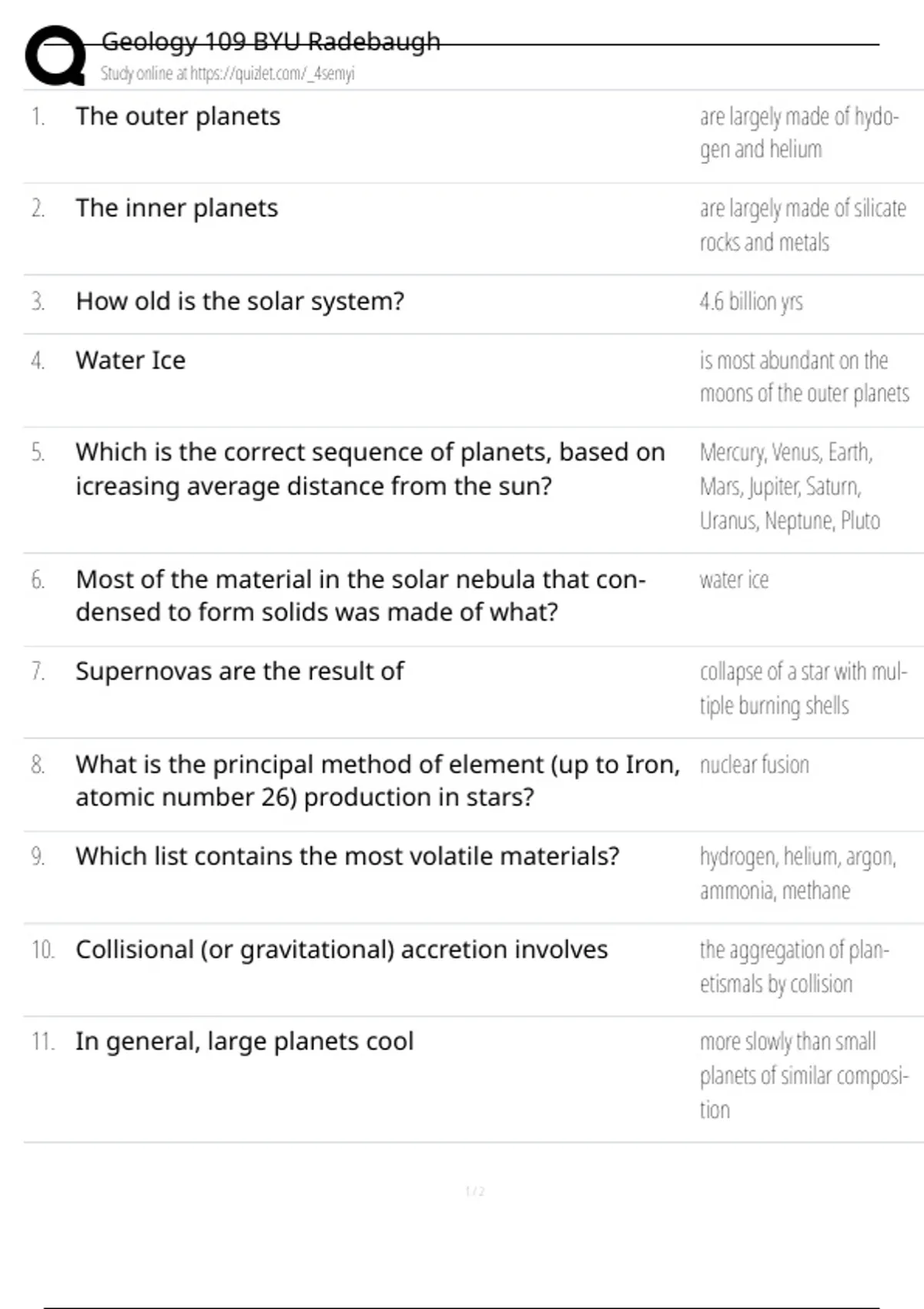 3. How old is the solar system? 4.6 billion yrs