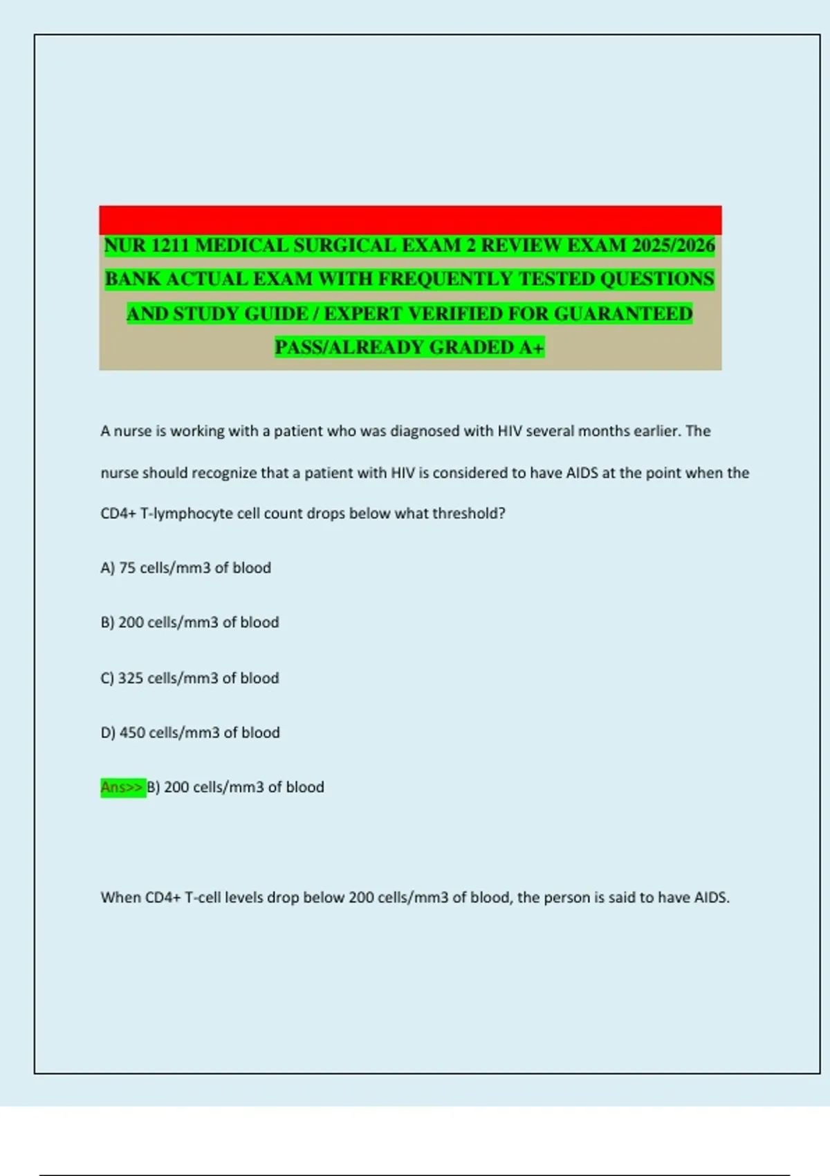 nurse should recognize that a patient with HIV is considered to have AIDS at the point when the