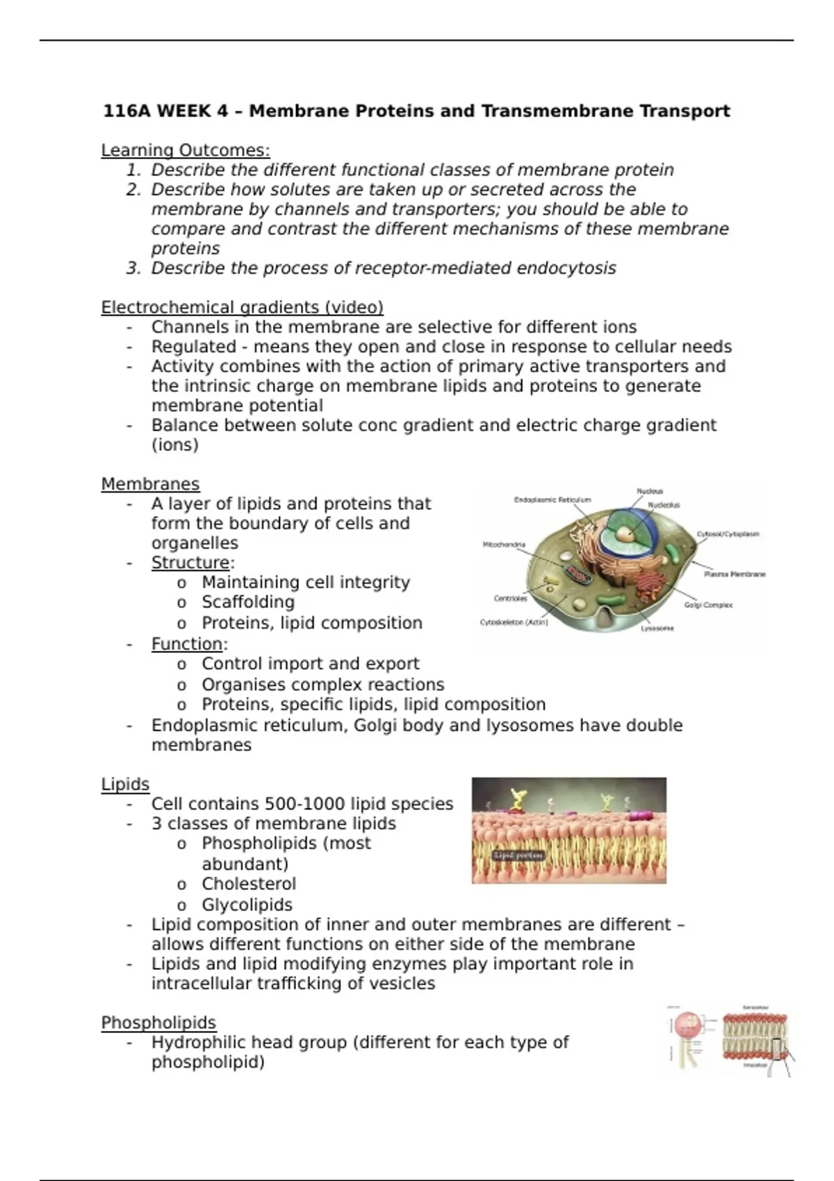116A WEEK 4 – Membrane Proteins and Transmembrane Transport