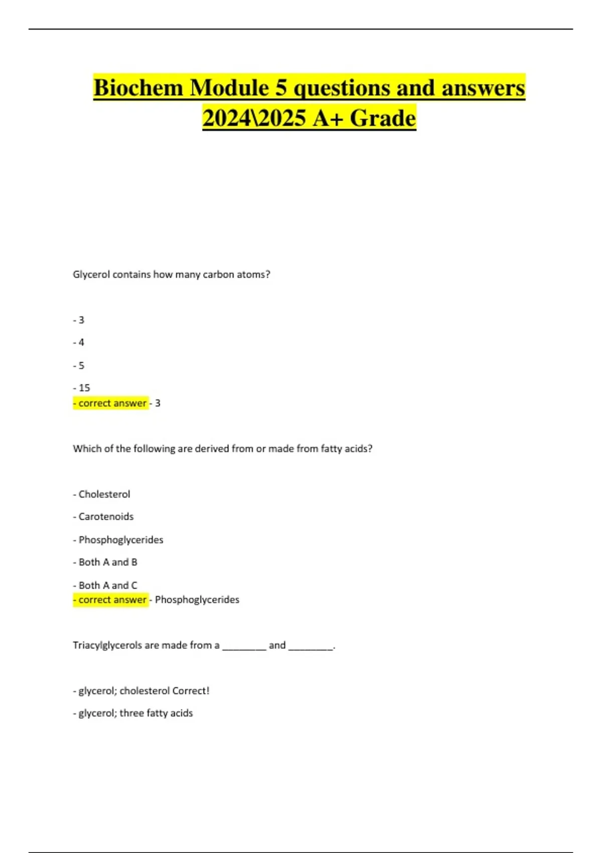 - glycerol; cholesterol Correct!