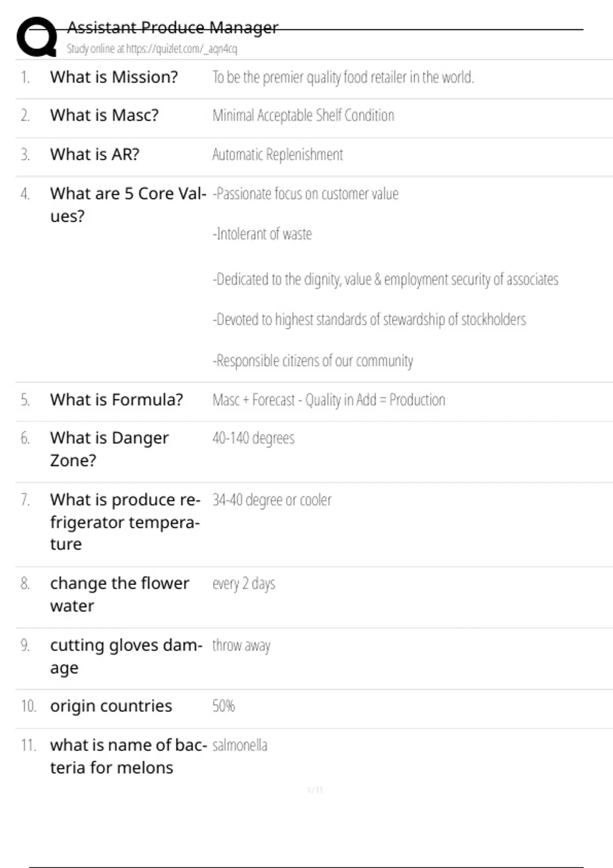 1. What is Mission? To be the premier quality food retailer in the world.
