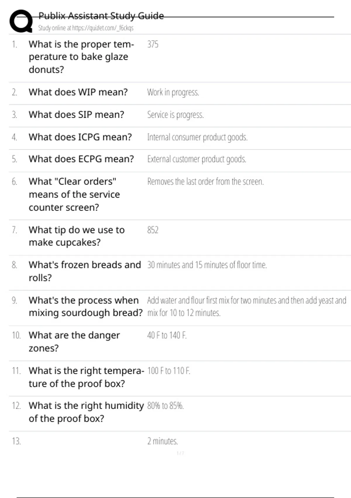 Publix Assistant Study Guide Exam questions and Answers