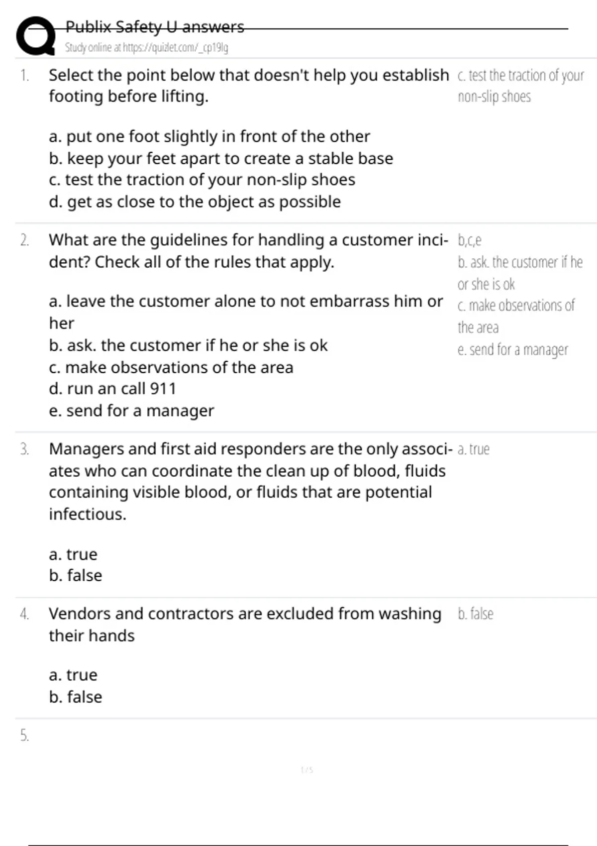 6. What are Publix's standard temperature for hot b. at or above 140 degrees