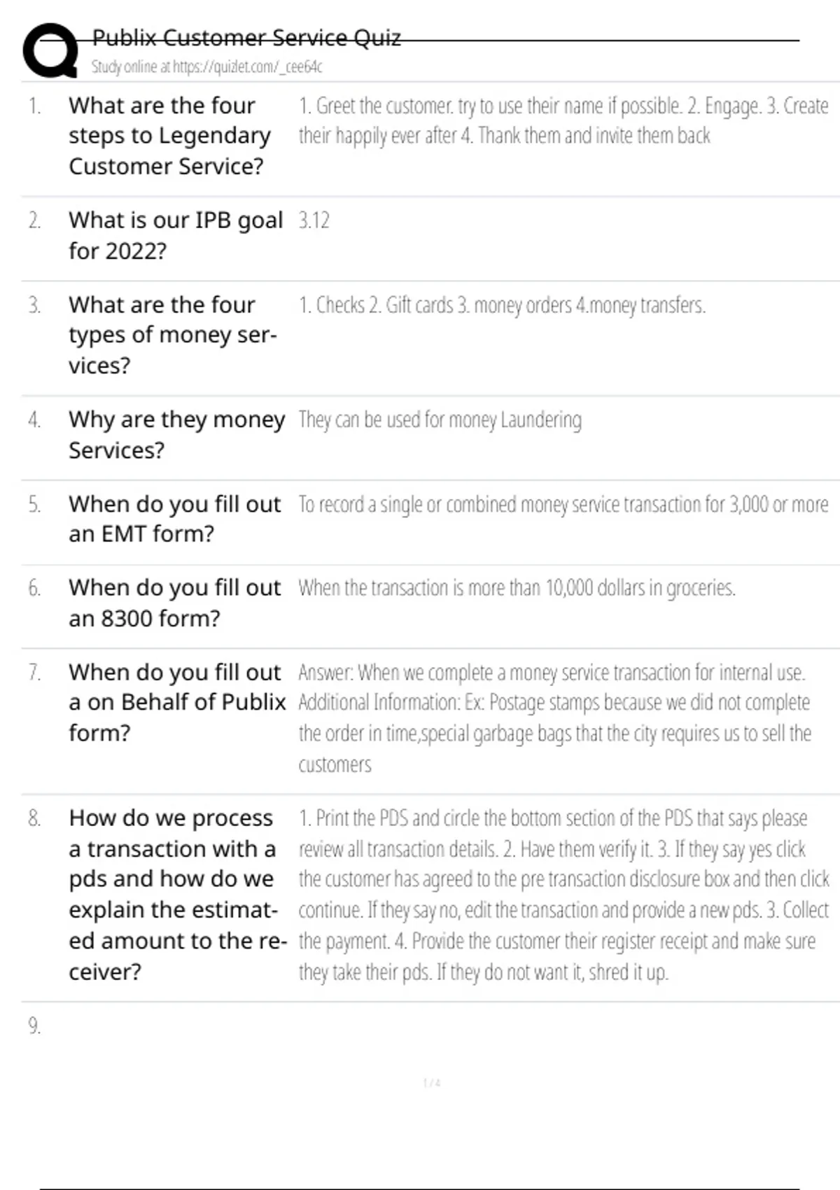 7. When do you fill out Answer: When we complete a money service transaction for internal use.