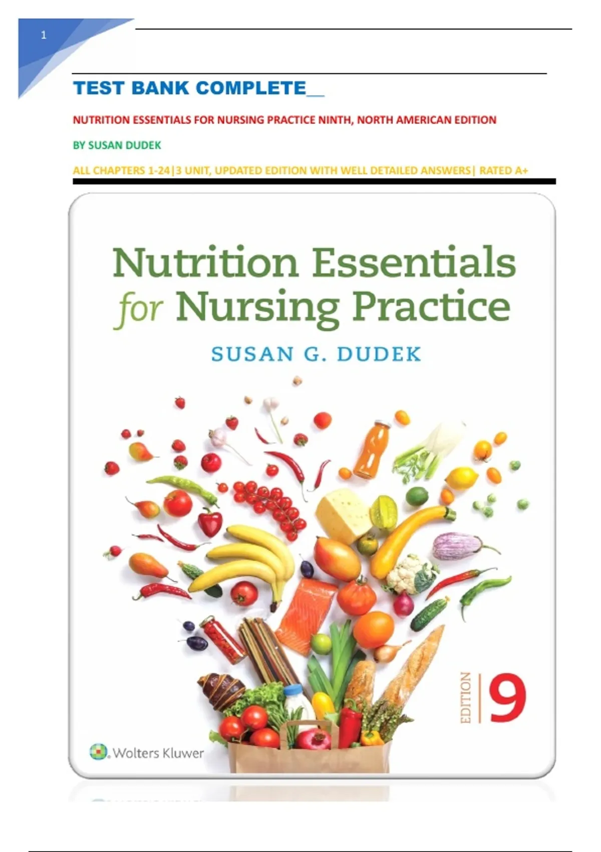 Nutrition essentials for nursing practice 9th edition dudek test bank