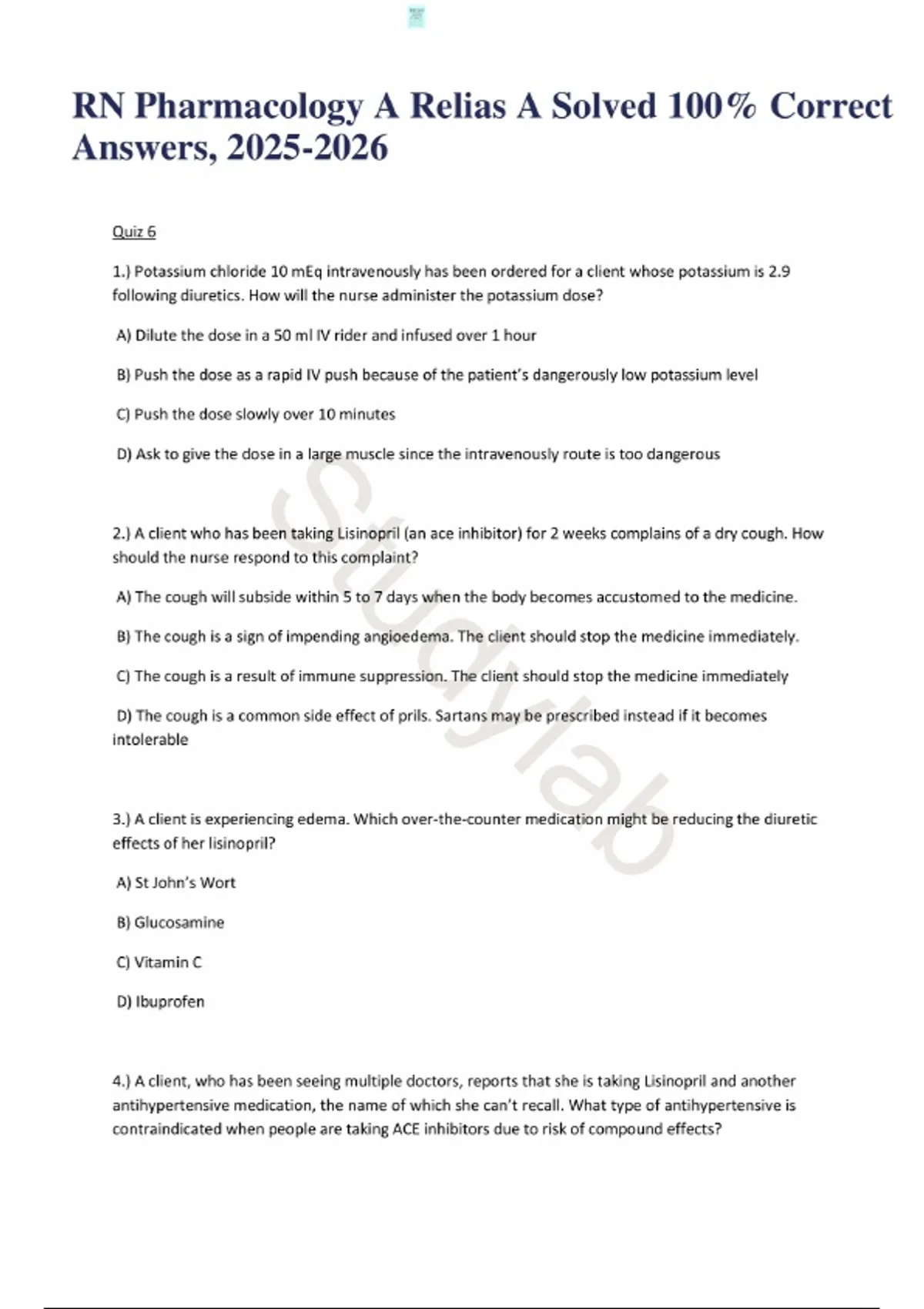 RN Pharmacology A Relias A Solved 100% Correct Answers