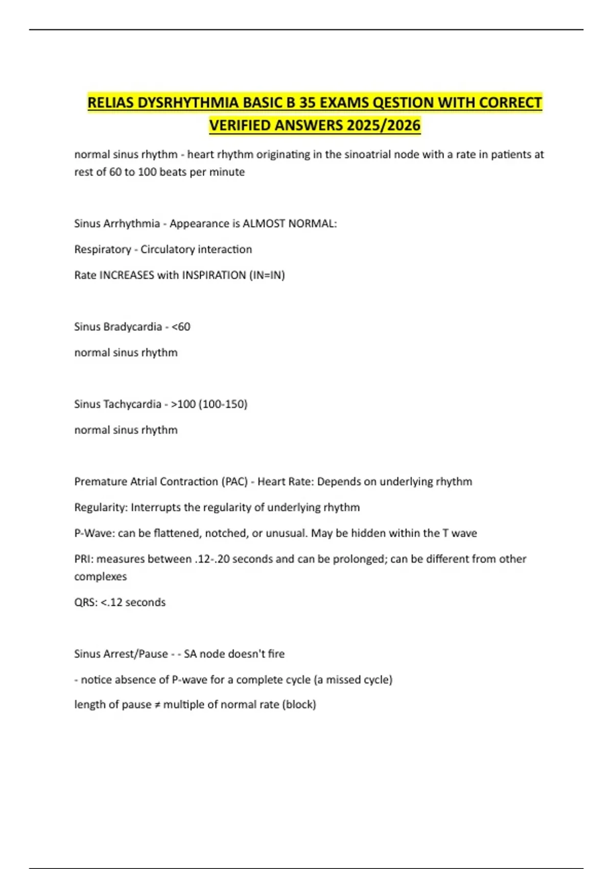RELIAS DYSRHYTHMIA BASIC B 35 QUESTIONS WITH CORRECT VERRIFIED ANSWERS 2025/2026
