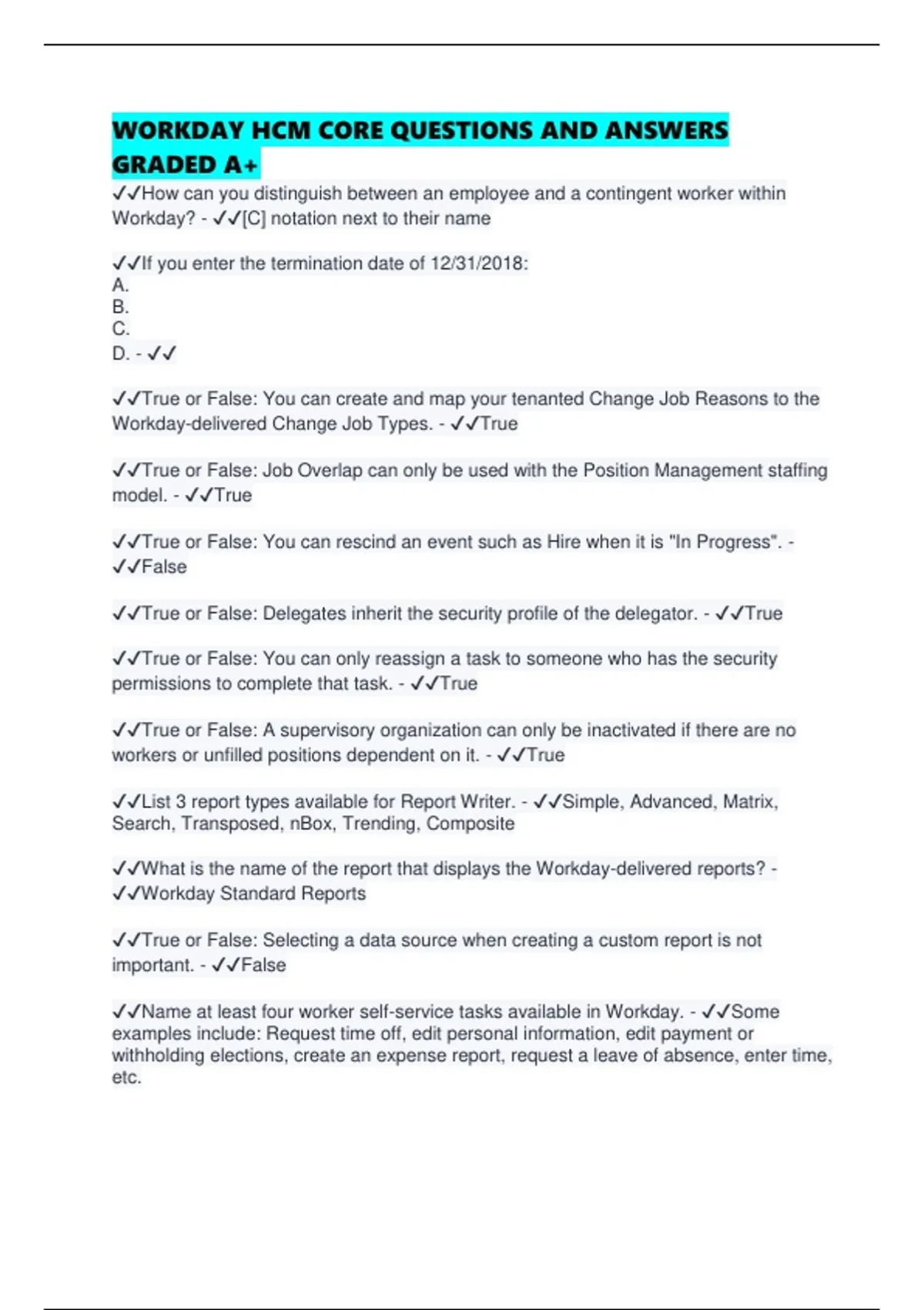 WORKDAY HCM CORE QUESTIONS AND ANSWERS GRADED A+