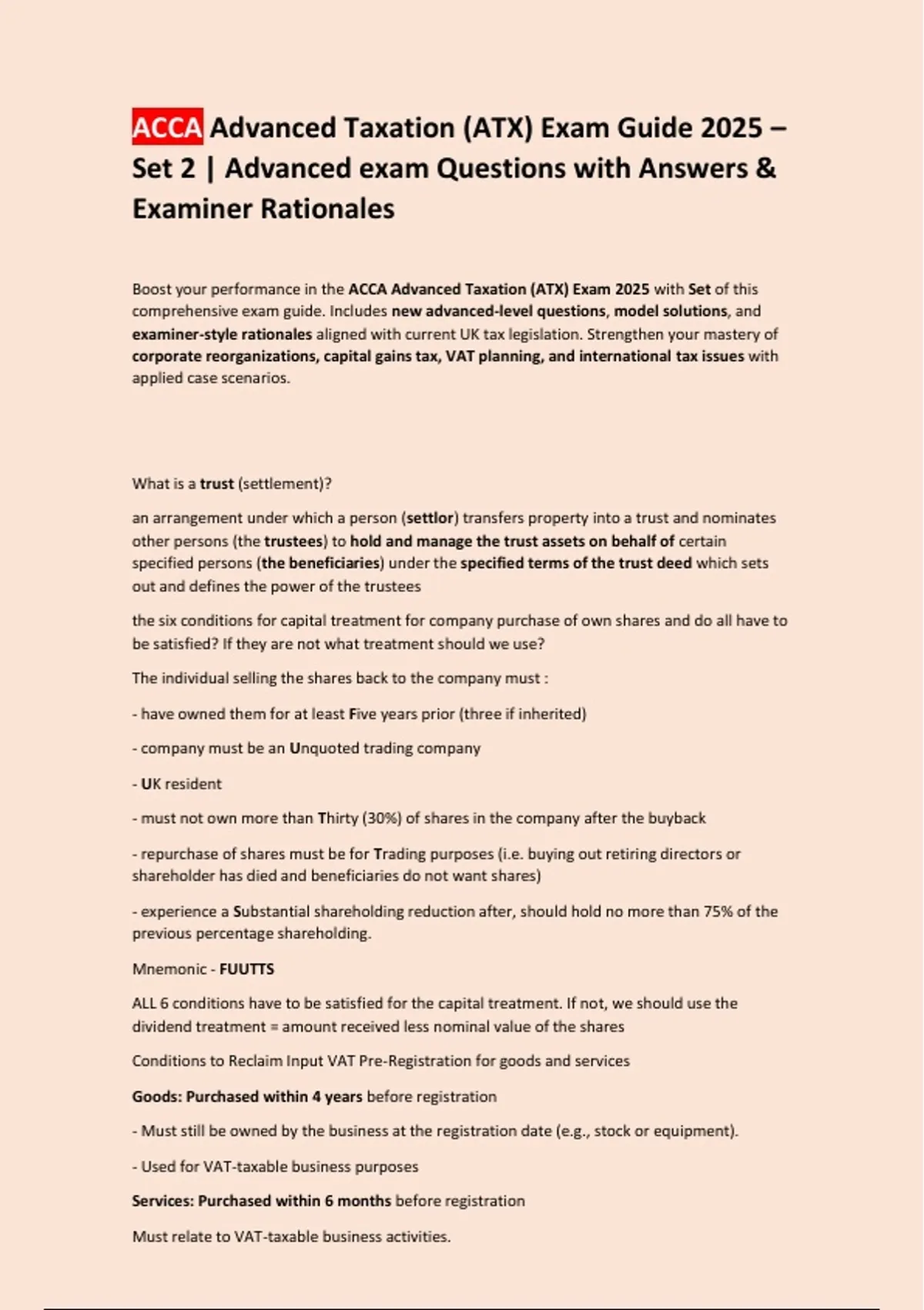 Boost your performance in the ACCA Advanced Taxation (ATX) Exam 2025 with Set of this