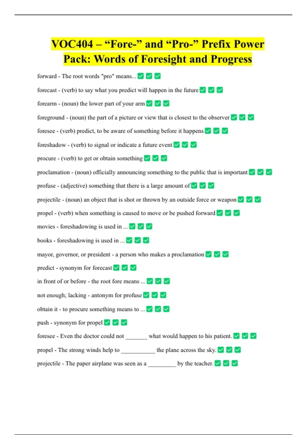 VOC404 – “Fore-” and “Pro-” Prefix Power Pack: Words of Foresight and Progress