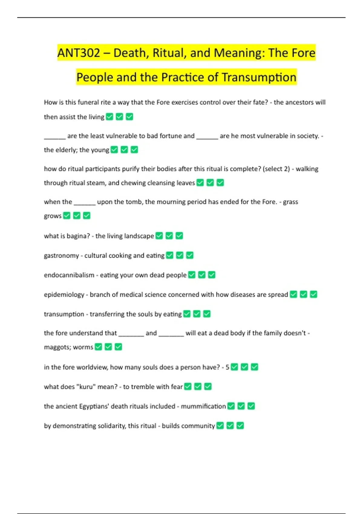 ANT302 – Death, Ritual, and Meaning: The Fore People and the Practice of Transumption
