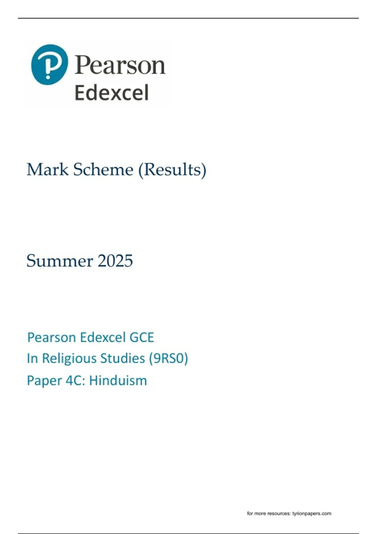 2025 Pearson Edexcel AS Religious Studies Paper 4 (GCE) Study of Religion Option 4C: Hinduism - Mark Scheme