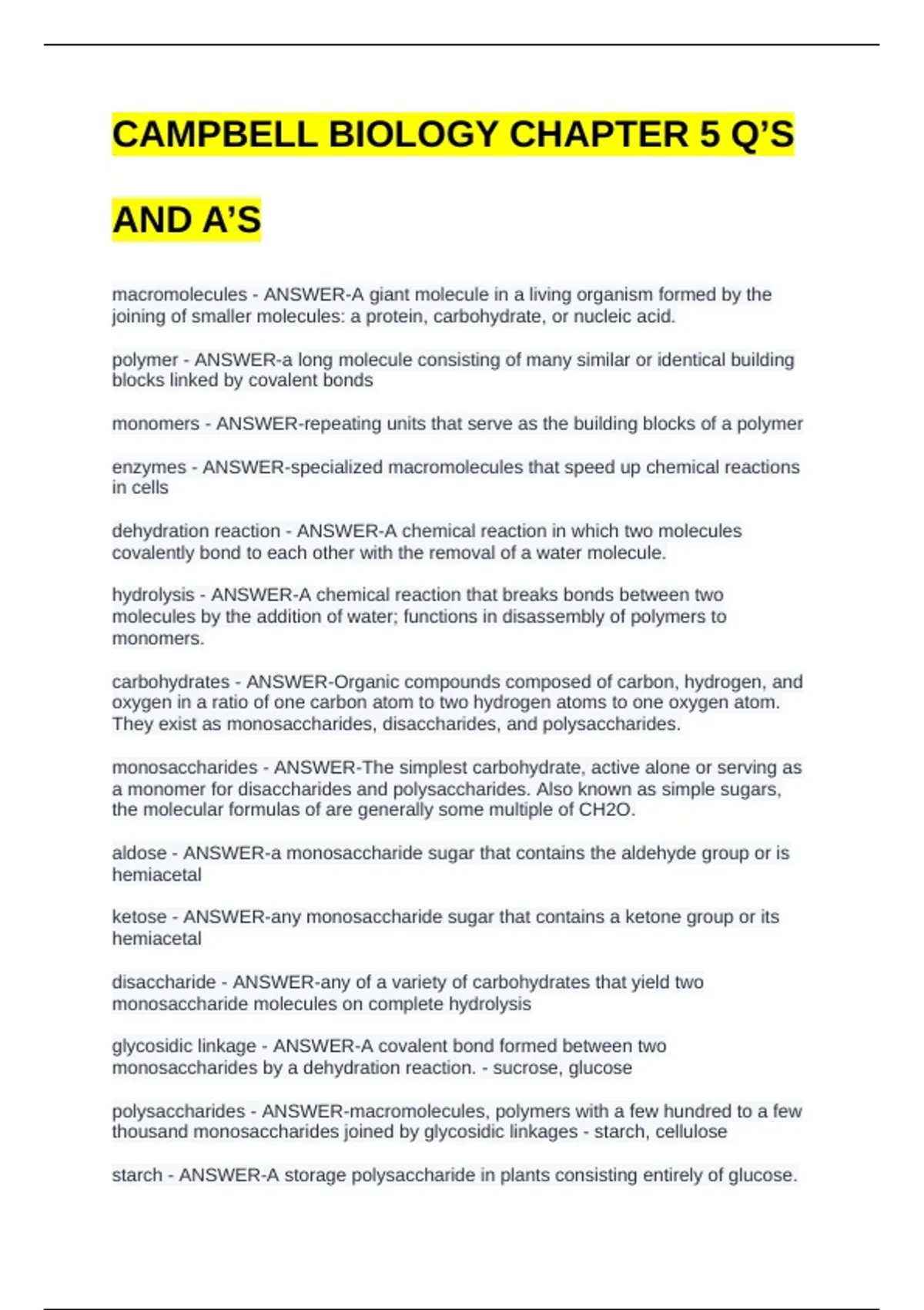 polysaccharides - ANSWER-macromolecules, polymers with a few hundred to a few
