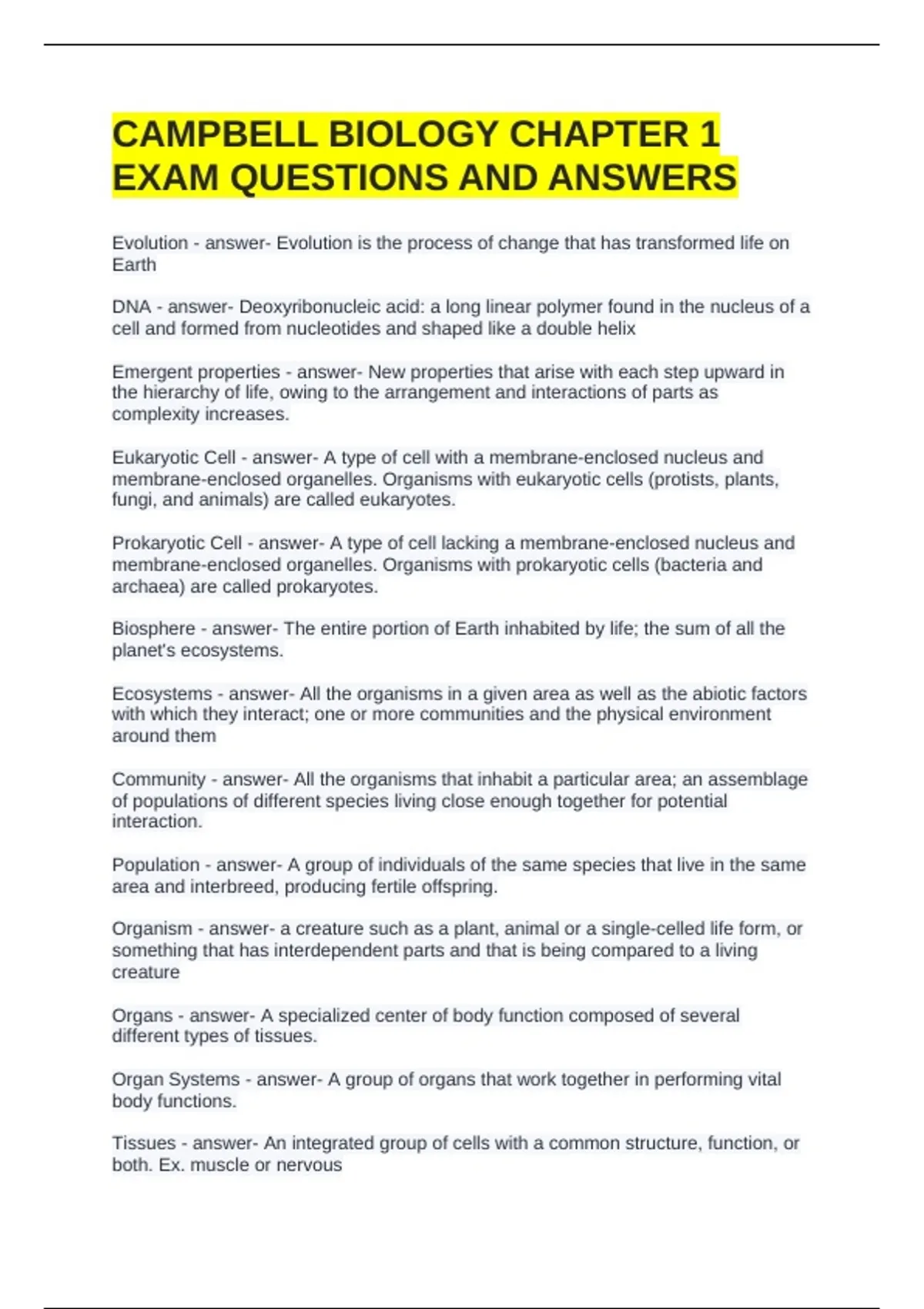 Ecosystems - answer- All the organisms in a given area as well as the abiotic factors