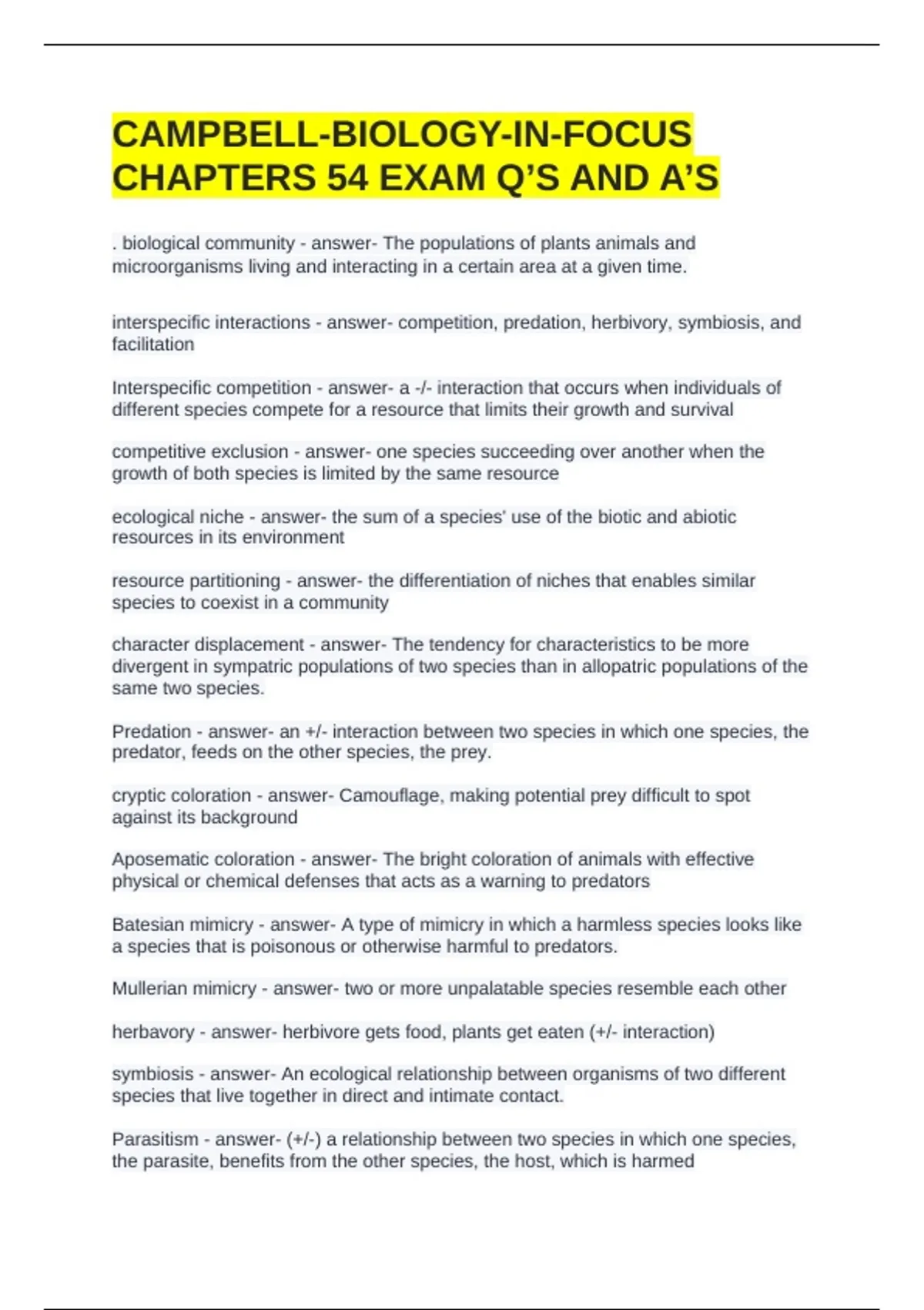 interspecific interactions - answer- competition, predation, herbivory, symbiosis, and