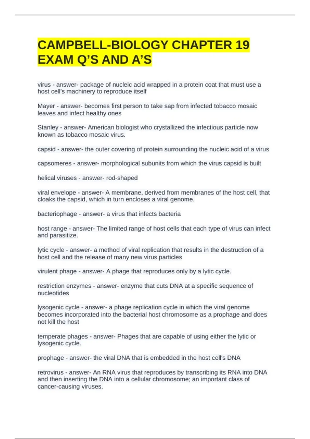 virulent phage - answer- A phage that reproduces only by a lytic cycle.