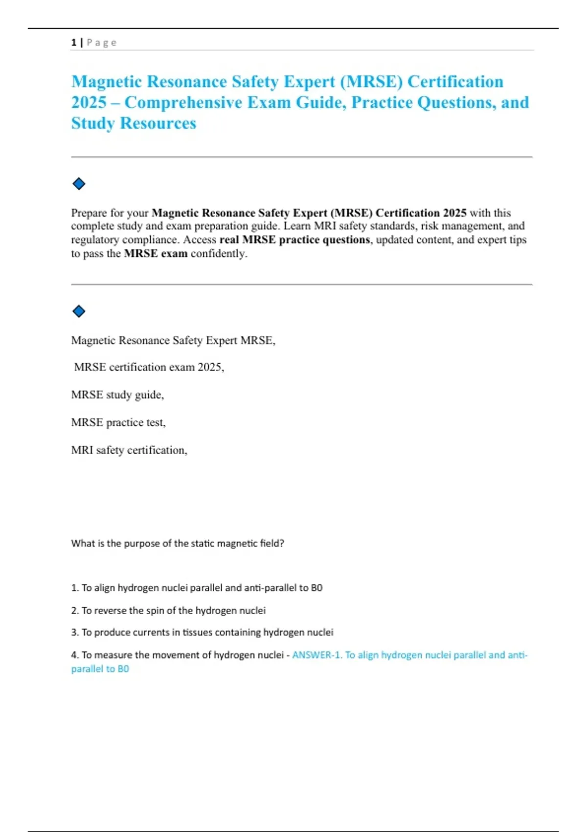 Prepare for your Magnetic Resonance Safety Expert (MRSE) Certification 2025 with this