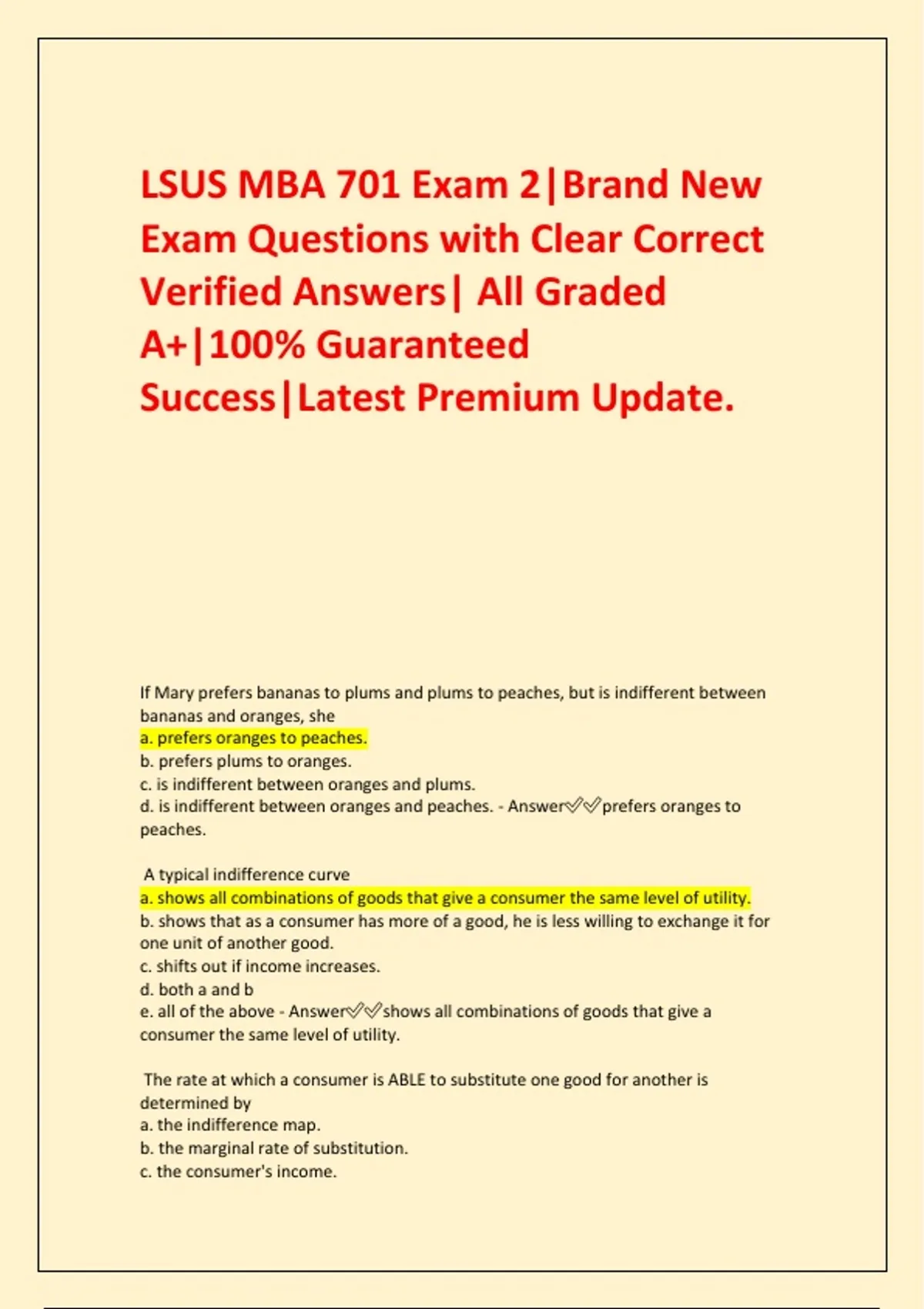 d. is indifferent between oranges and peaches. - Answer✅✅prefers oranges to