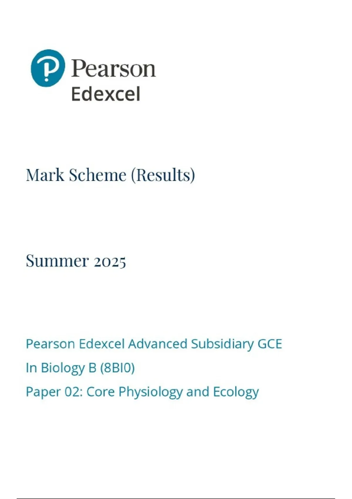 Edexcel AS-Level Biology B Paper 1 2025 Mark Scheme