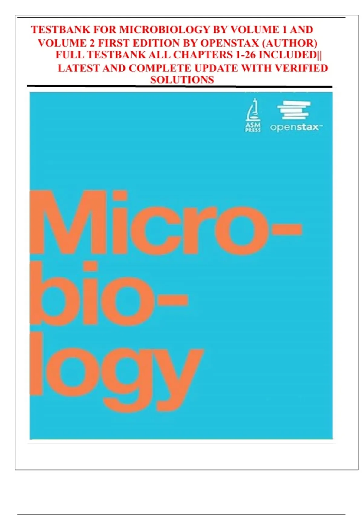 Test Bank for Microbiology by OpenStax - 1st Edition | Volumes 1 & 2 | Complete Chapters 1-26 | All Questions & Verified Answers | MCQ, True/False, Essay | ASM Standards