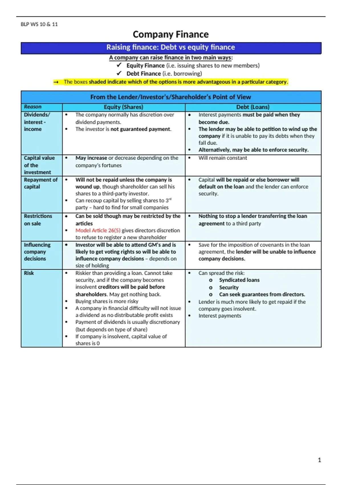 From the Lender/Investor’s/Shareholder’s Point of View