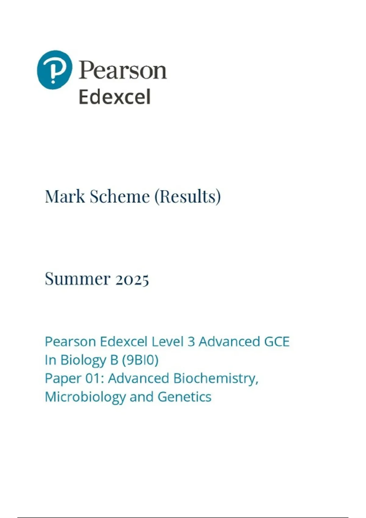 Edexcel 2025 A-Level Biology B Paper 1 Mark Scheme