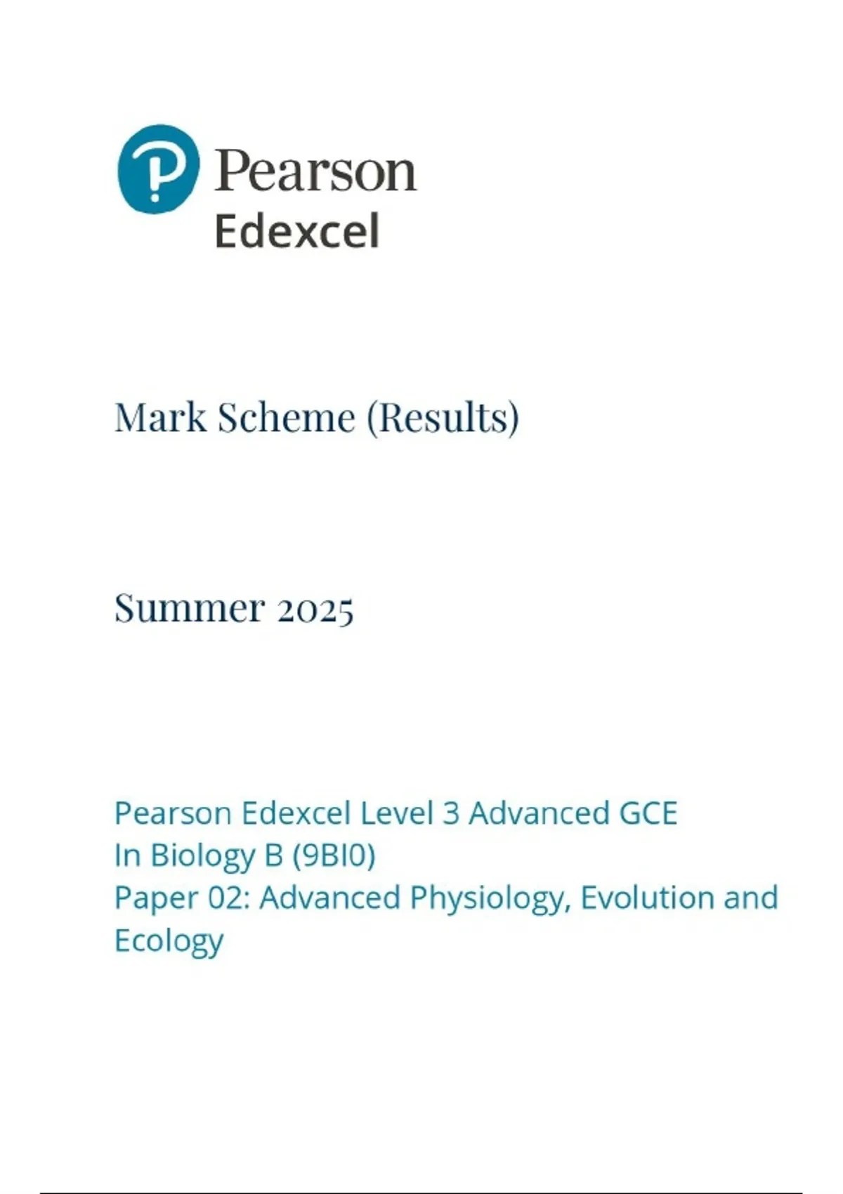Edexcel 2025 A-Level Biology B Paper 2 Mark Scheme