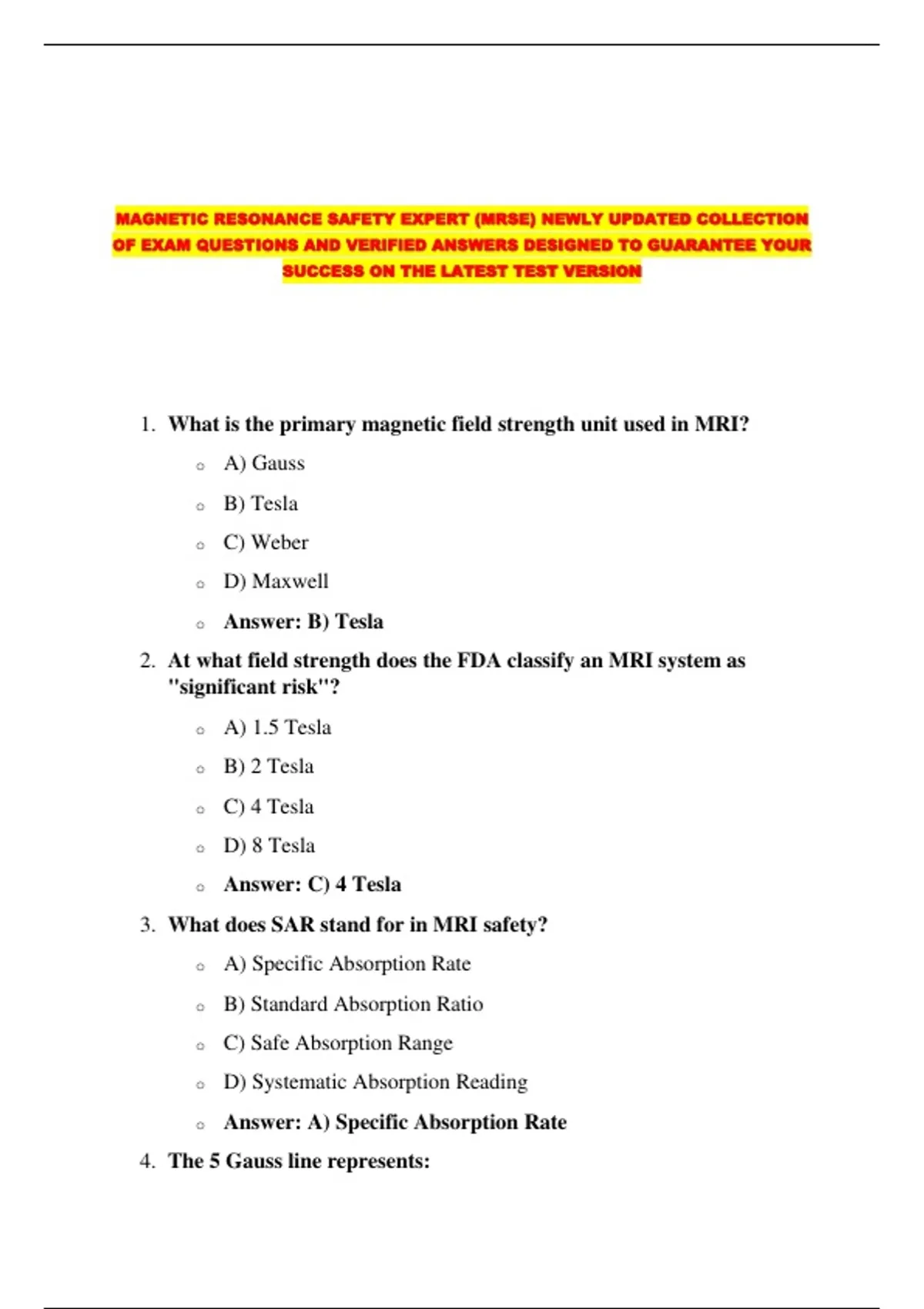 MAGNETIC RESONANCE SAFETY EXPERT (MRSE) NEWLY UPDATED COLLECTION