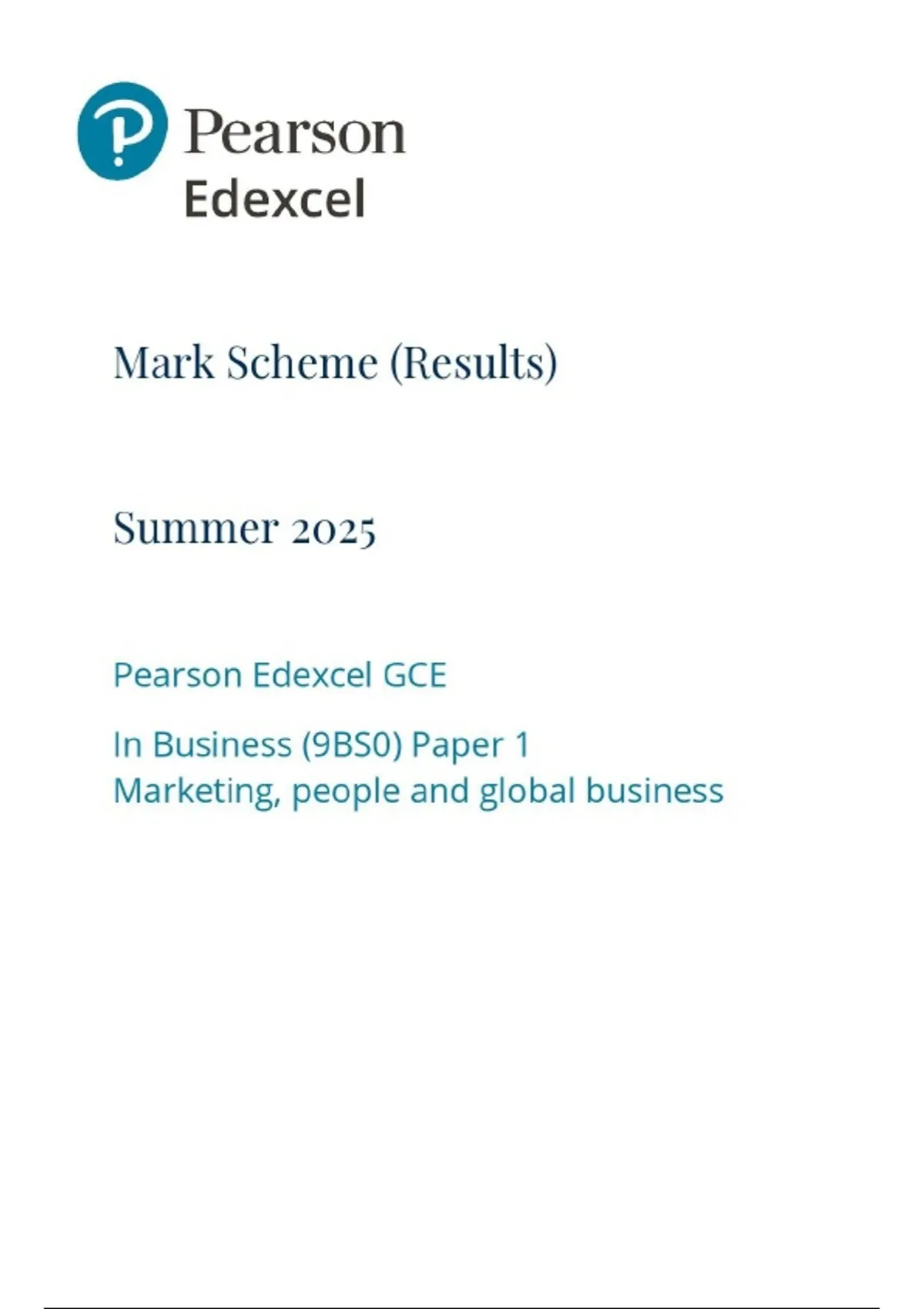 Edexcel A-Level 2025 Business Paper 1 Mark Scheme