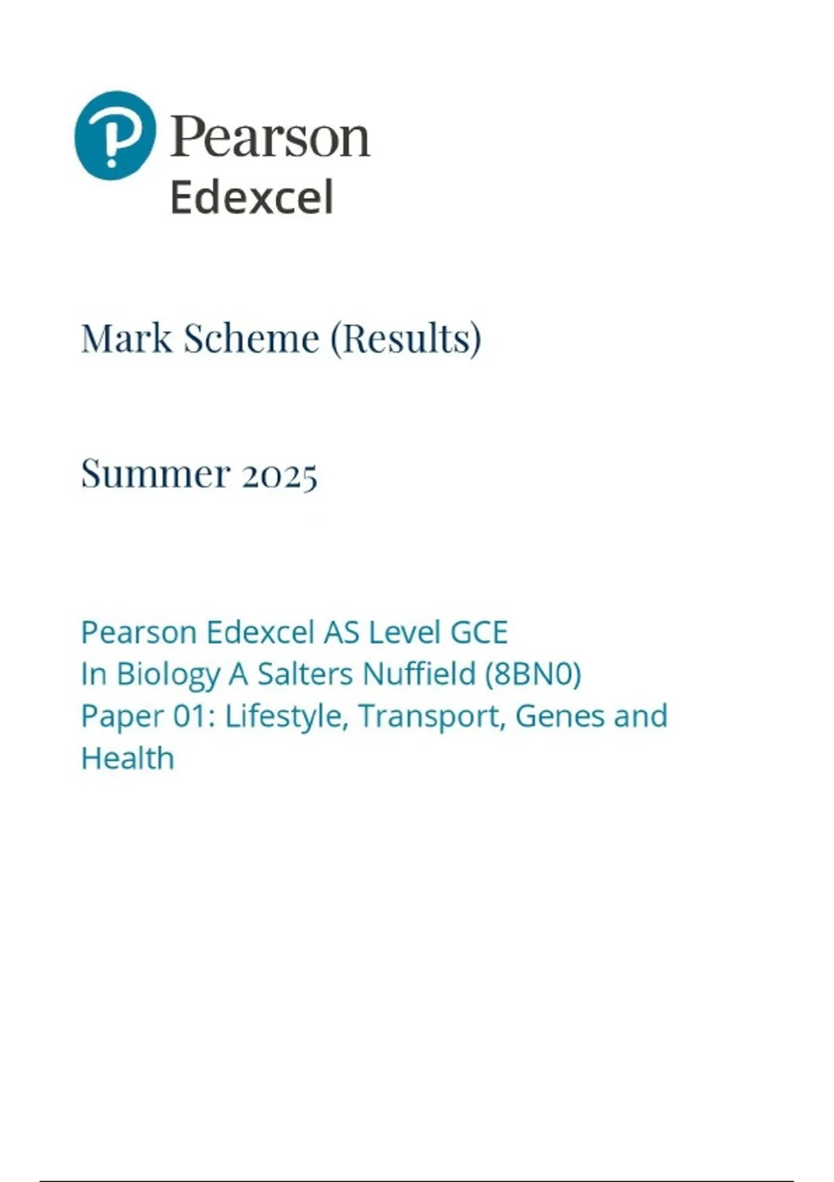 As-Level 2025 Edexcel Biology A (Salters Nuffield) Paper 1 Mark Scheme