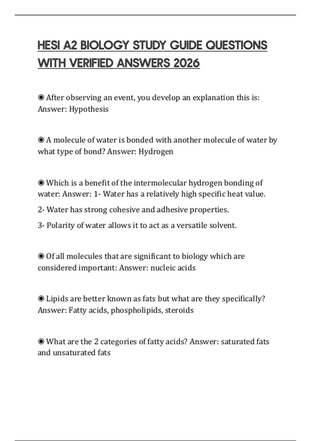 HESI A2 BIOLOGY STUDY GUIDE QUESTIONS WITH VERIFIED ANSWERS 2026