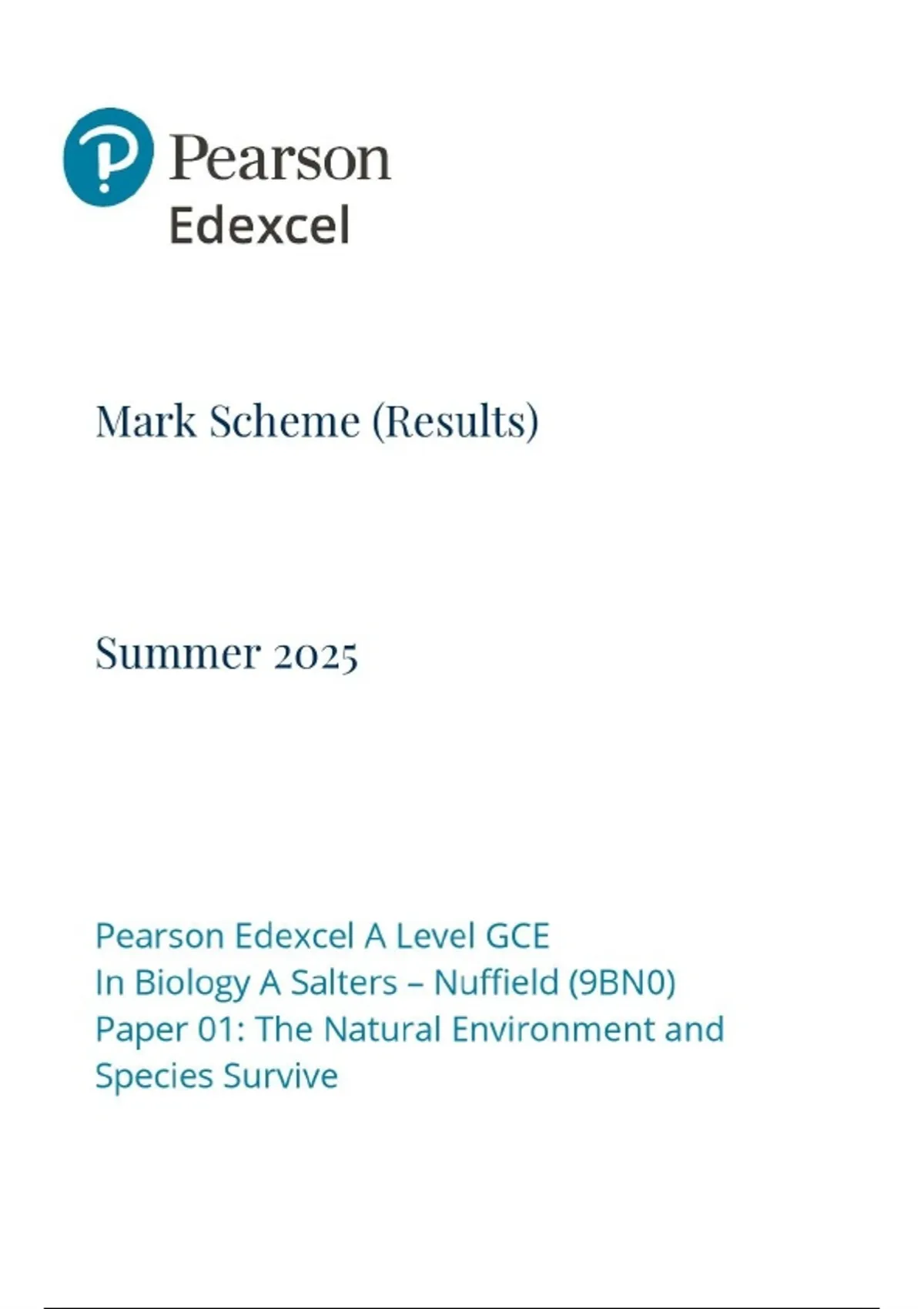 EDEXCEL A LEVEL BIOLOGY A (SALTERS NUFFIELF) PAPER 1 2025 MARK SCHEME