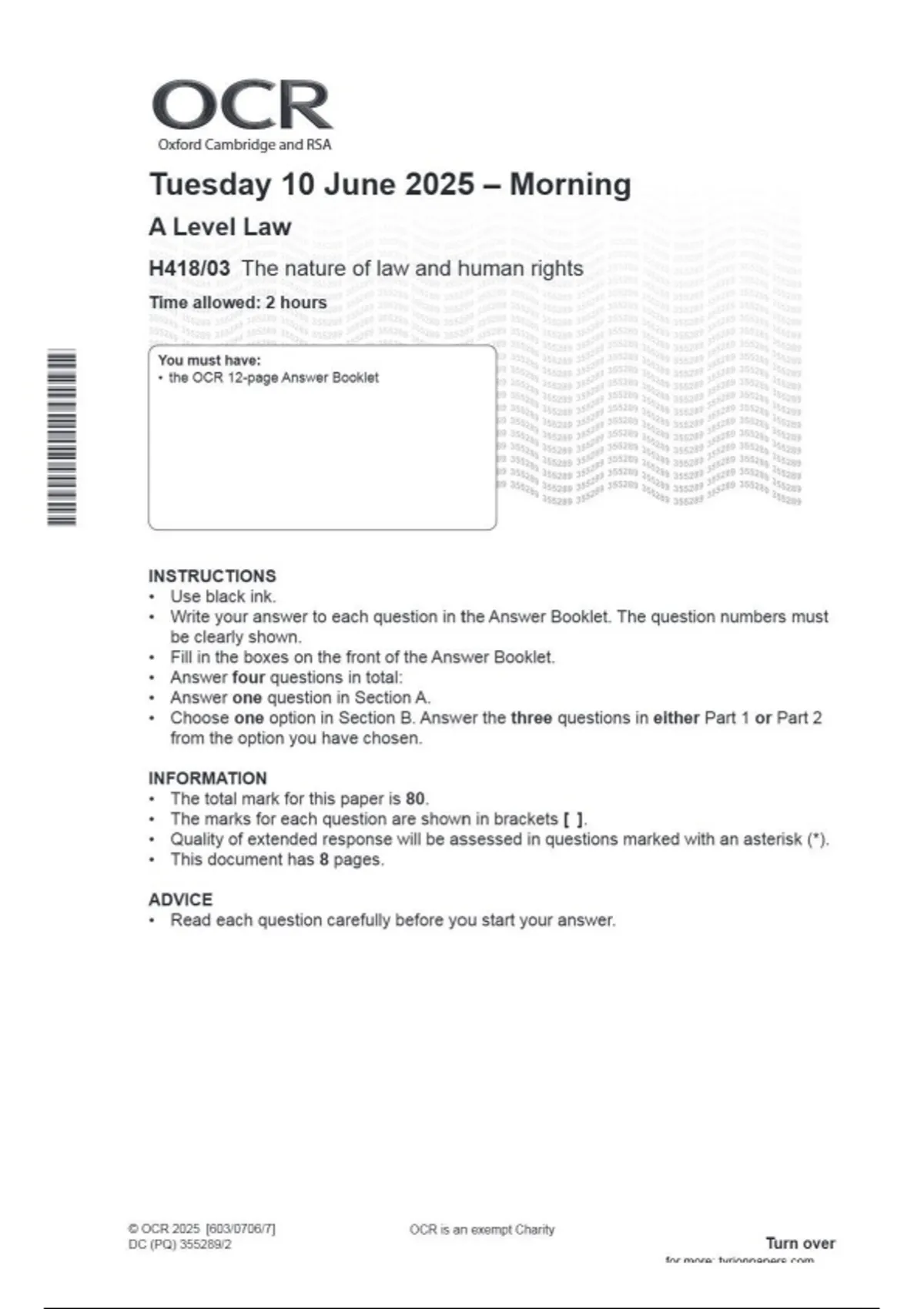 A Level Law H418/03 The nature of law and human rights June 2025