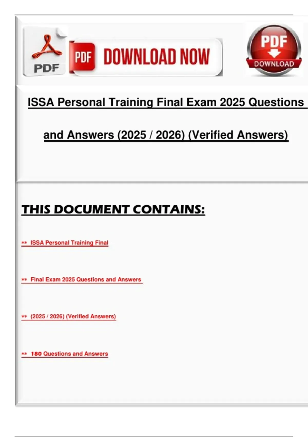 ISSA Personal Training Final Exam 2025 Questions and Answers (2025 / 2026) (Verified Answers)