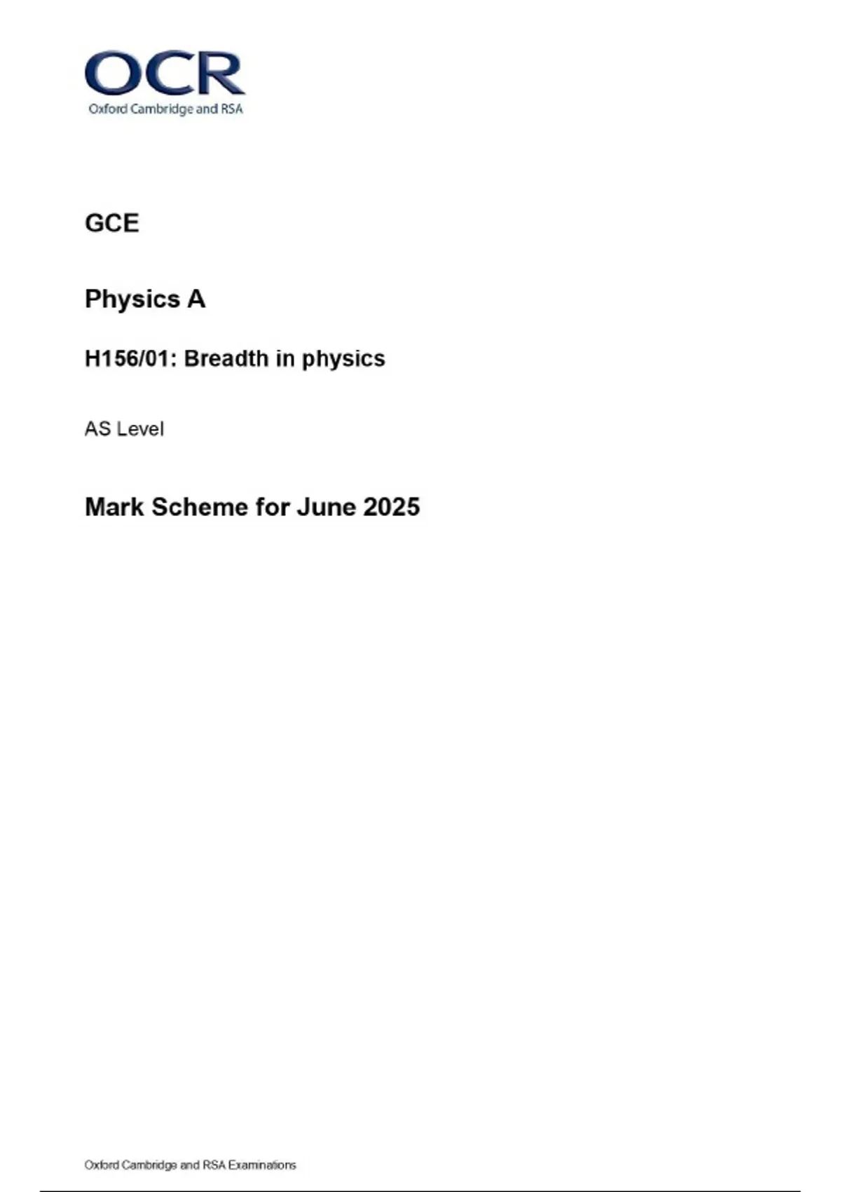 AS Level Physics A (H156/01) Breadth in Physics Mark Scheme paper 1