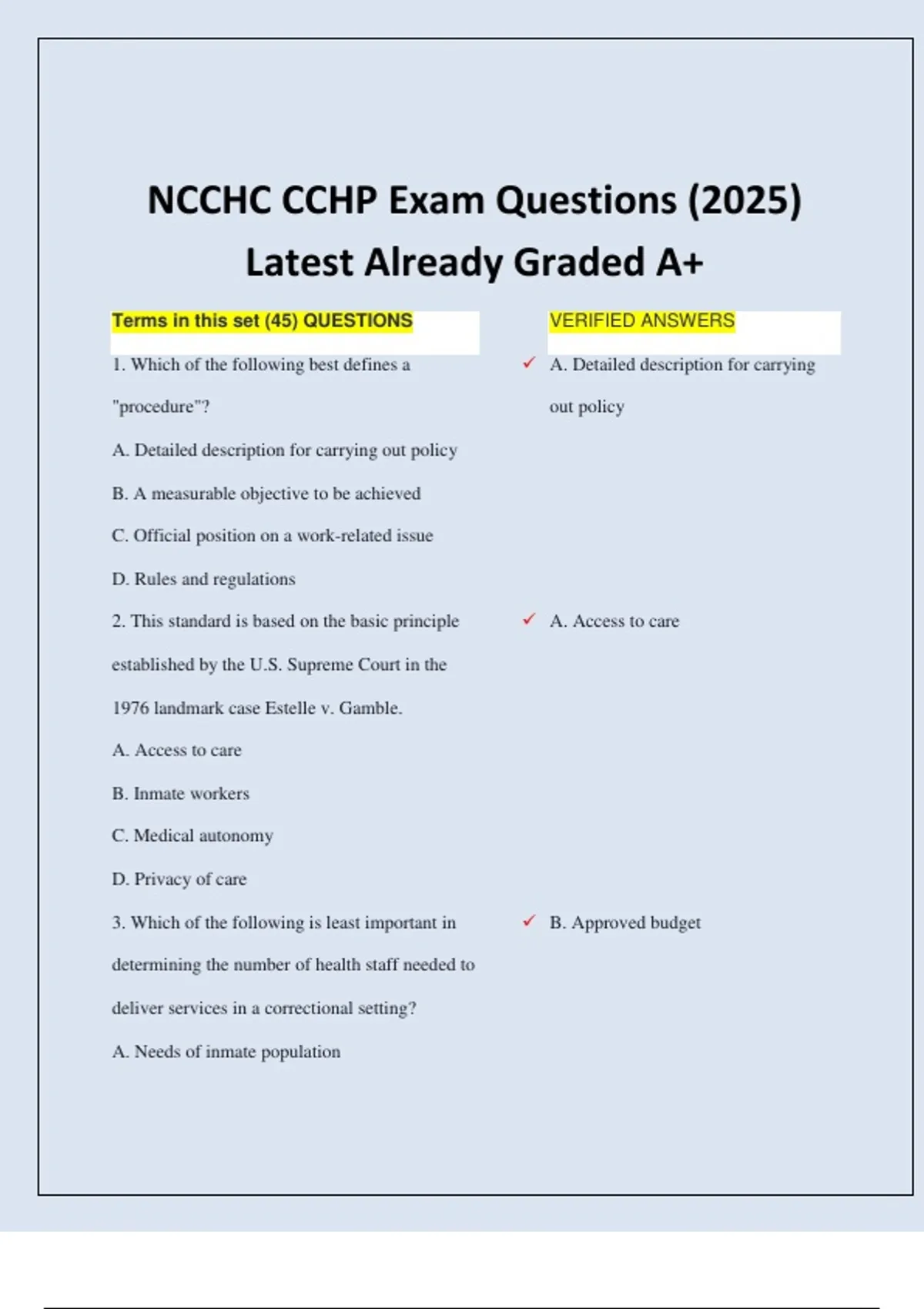 NCCHC CCHP Exam Questions (2025) Latest Already Graded A+
