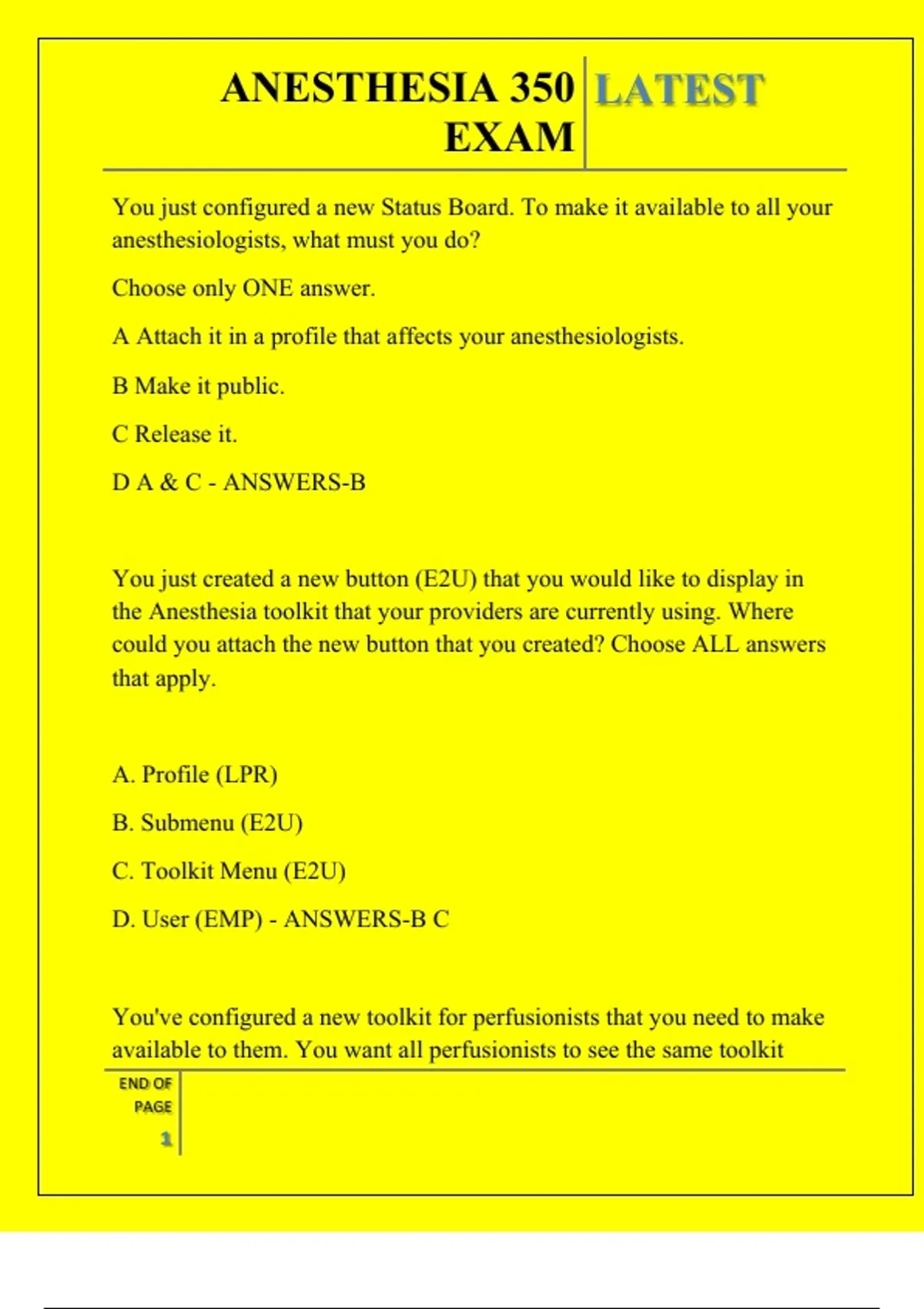 to make it available to your anesthesia providers? Choose only ONE