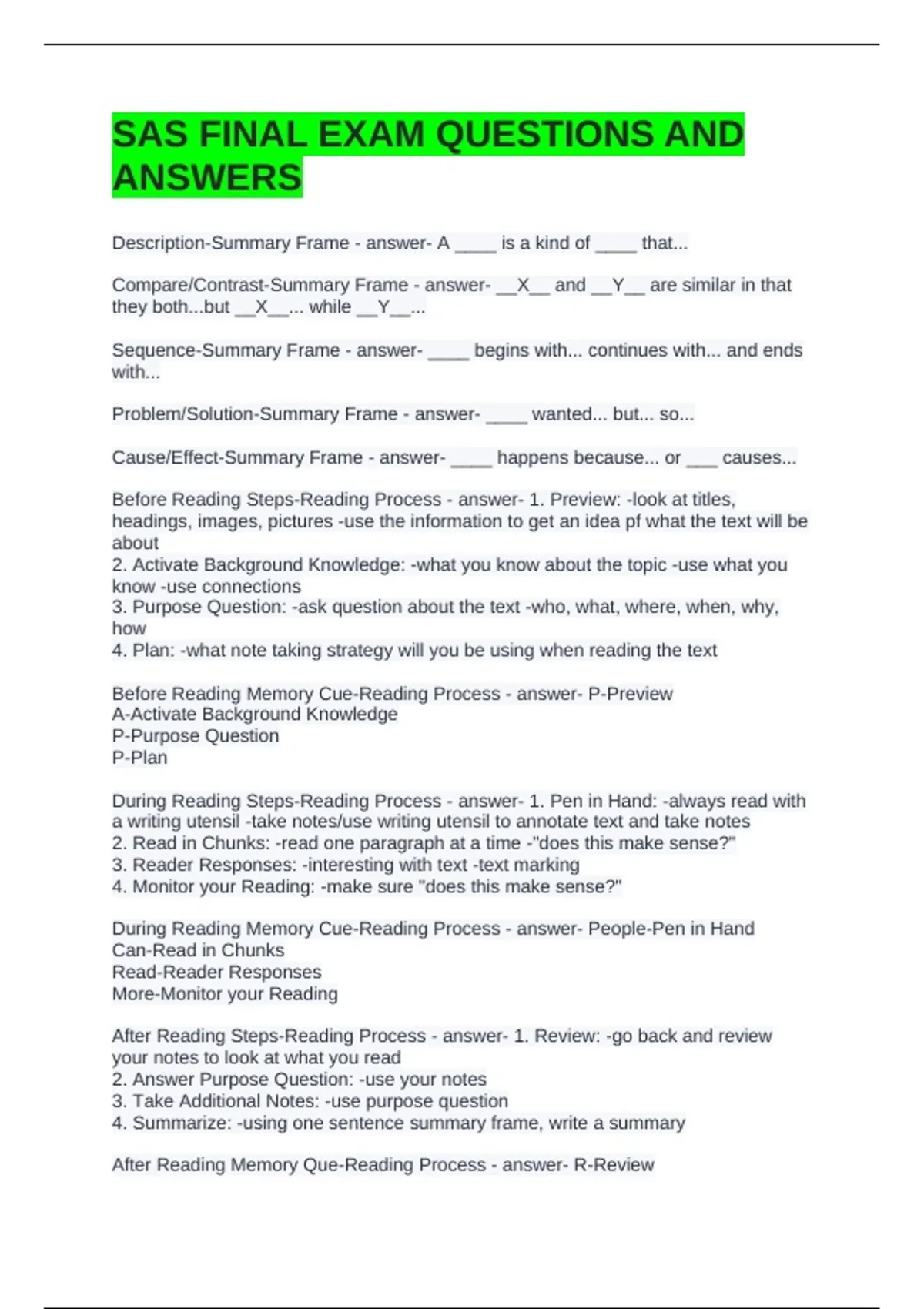 Before Reading Memory Cue-Reading Process - answer- P-Preview
