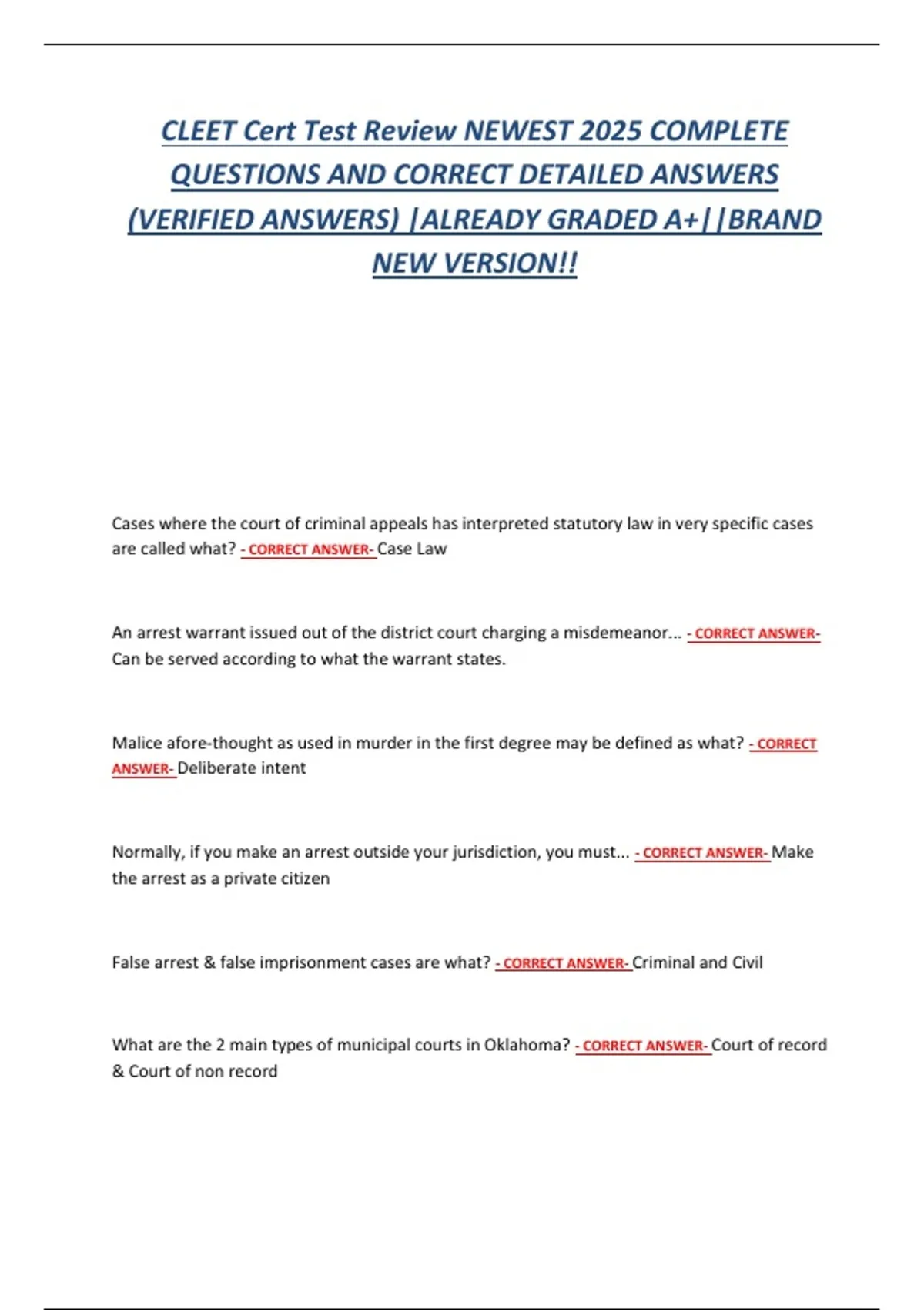 QUESTIONS AND CORRECT DETAILED ANSWERS