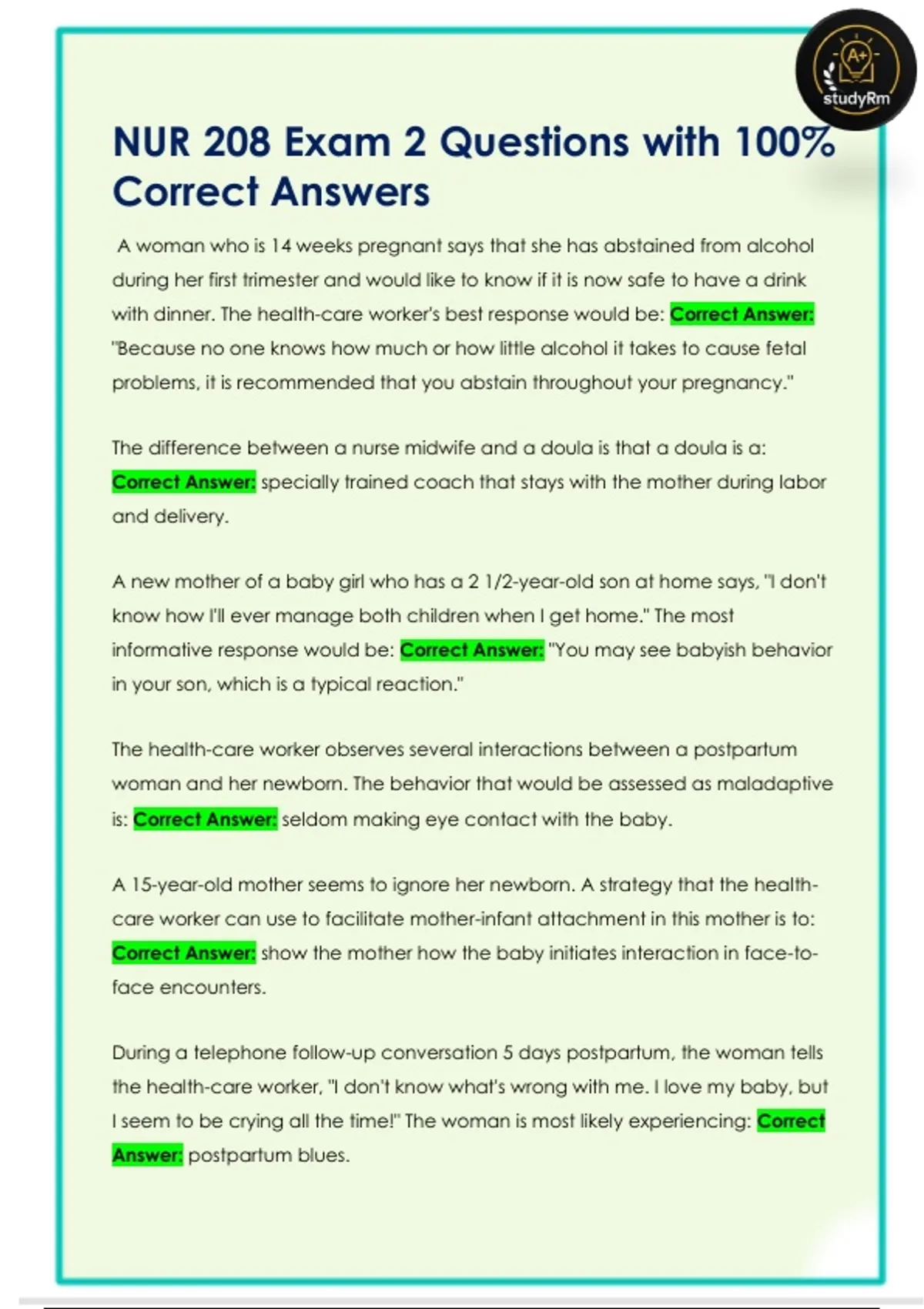 I seem to be crying all the time!" The woman is most likely experiencing: Correct