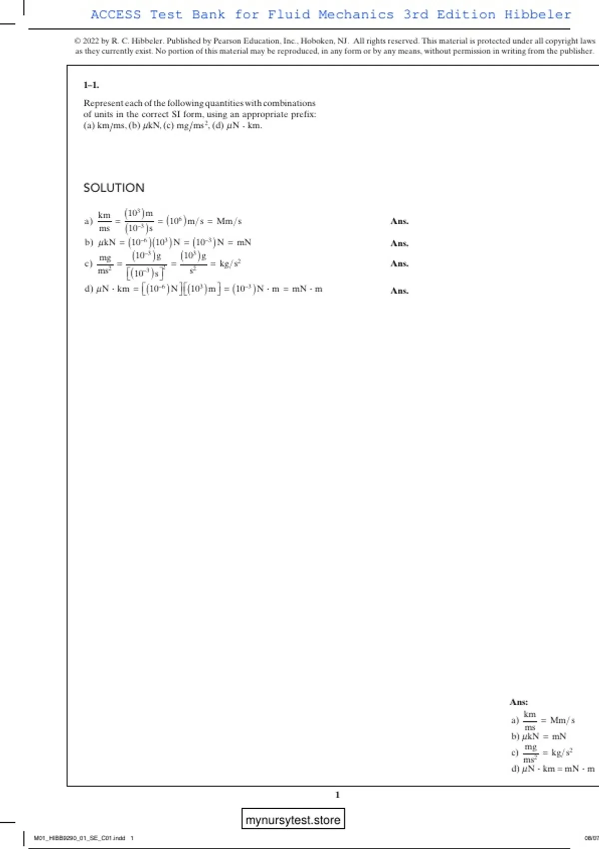 , ACCESS Test Bank for Fluid Mechanics 3rd Edition Hibbeler