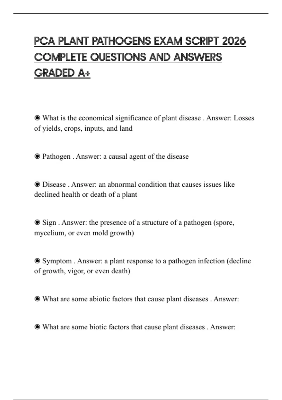 PCA PLANT PATHOGENS EXAM SCRIPT 2026