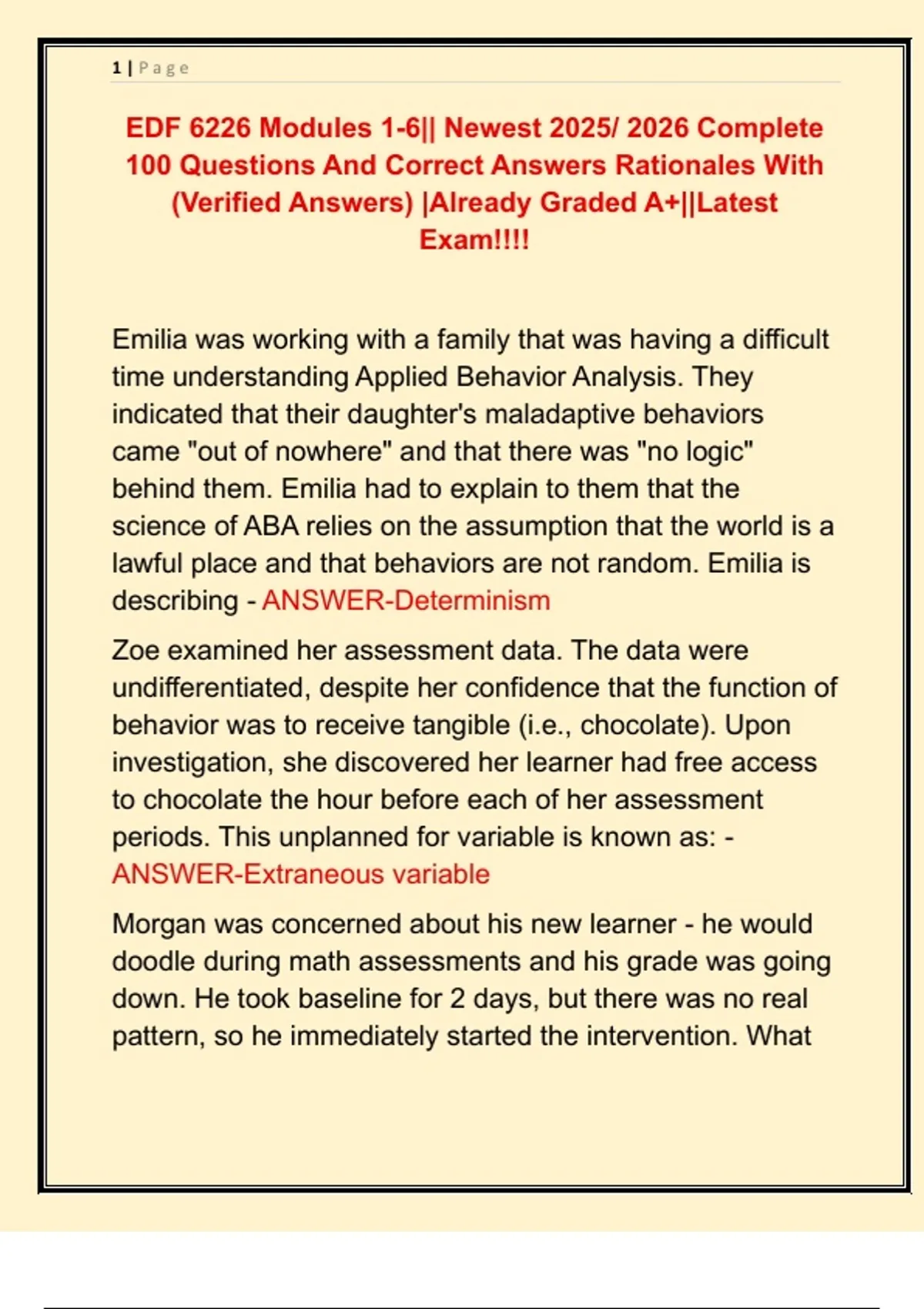 EDF 6226 Modules 1-6|| Newest 2025/ 2026 Complete 100 Questions And Correct Answers Rationales With (Verified Answers) |Already Graded A+||Latest Exam!!!!