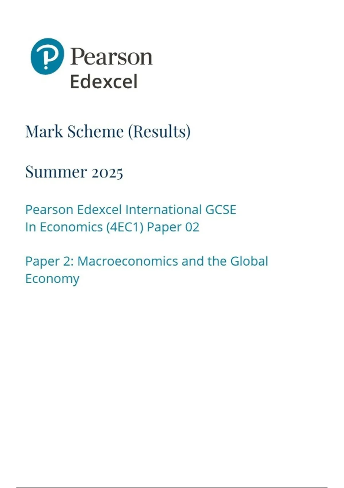 Pearson Edexcel IGCSE Economics Level 1/2 PAPER 2 (4EC1/02) JUNE 2025 MARK SCHEME: Macroeconomics and the Global Economy