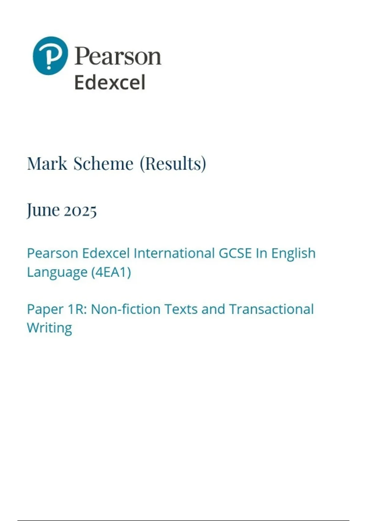 2025 Pearson Edexcel IGCSE English Language A (9–1) PAPER 1R (4EA1/01R) MARK SCHEME: Non-fiction Texts and Transactional Writing