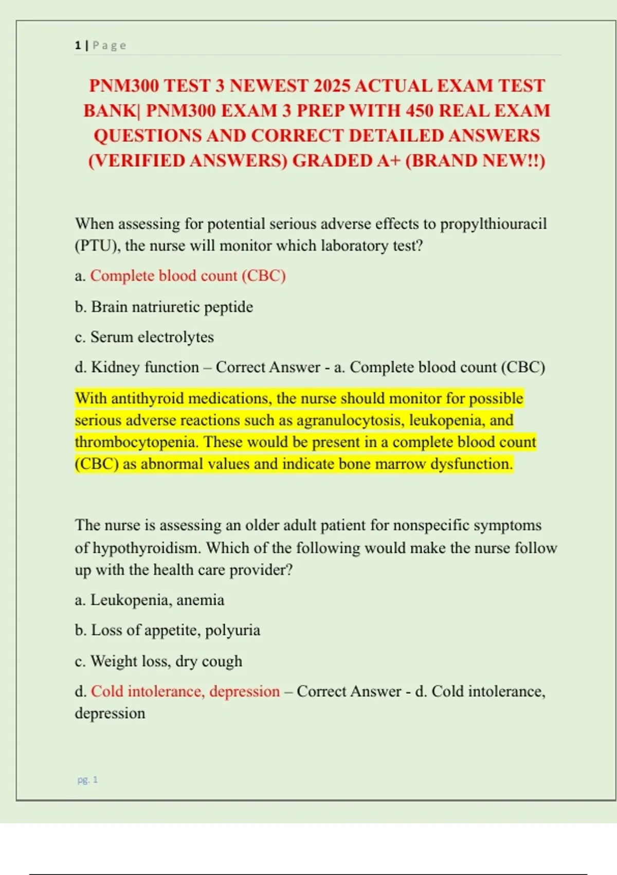 BANK| PNM300 EXAM 3 PREP WITH 450 REAL EXAM