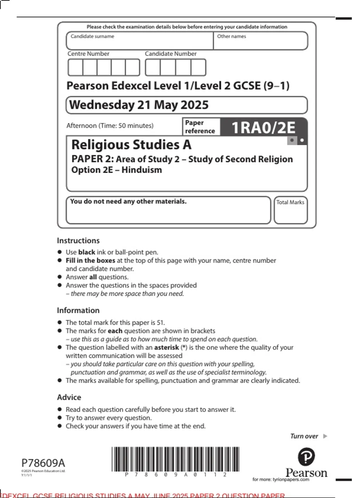 •• The total mark for this paper is 51.