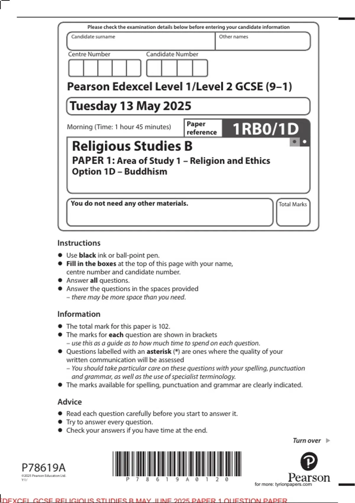 PAPER 1: Area of Study 1 – Religion and Ethics