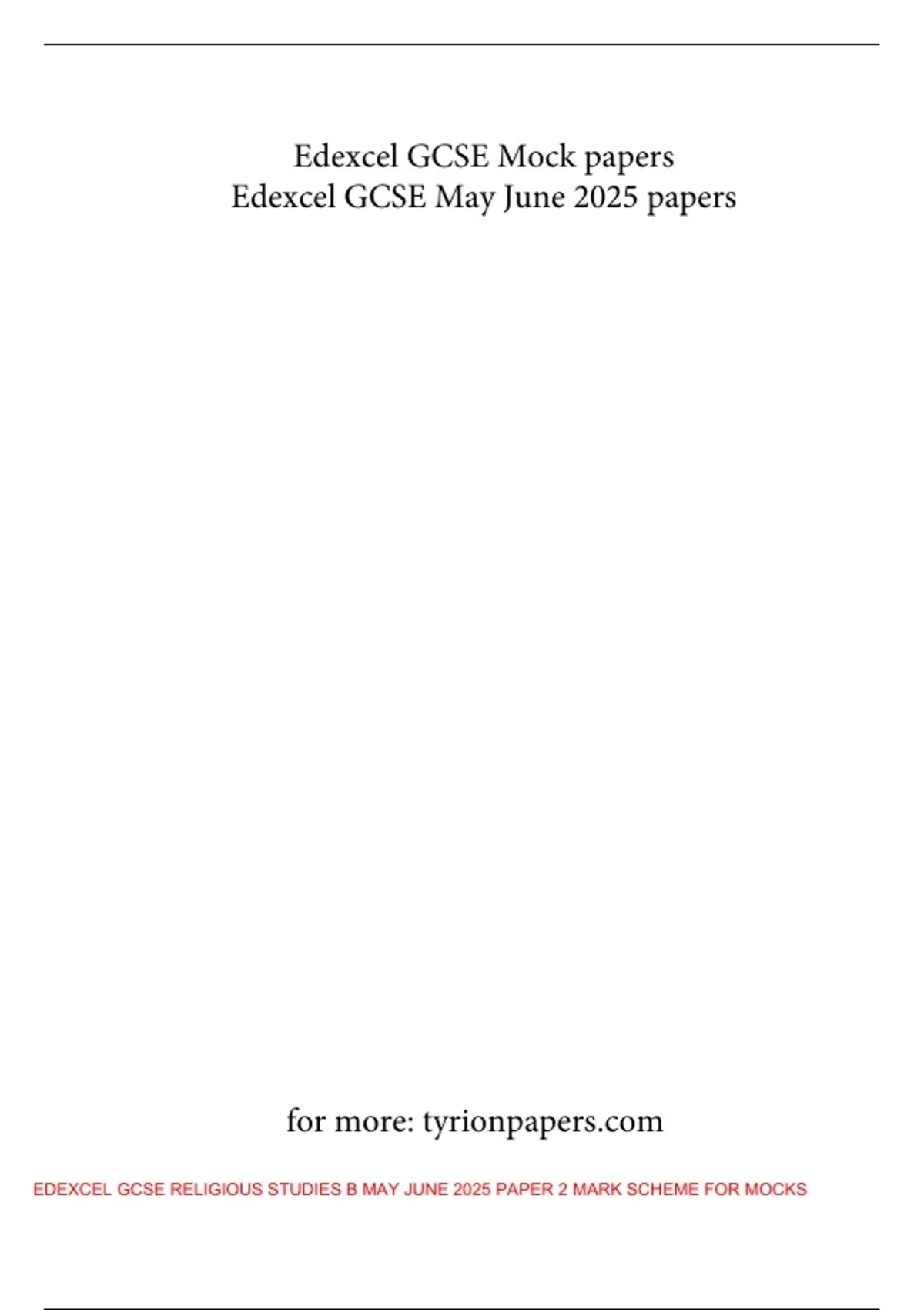 EDEXCEL GCSE RELIGIOUS STUDIES B MAY JUNE 2025 PAPER 2 MARK SCHEME FOR MOCKS